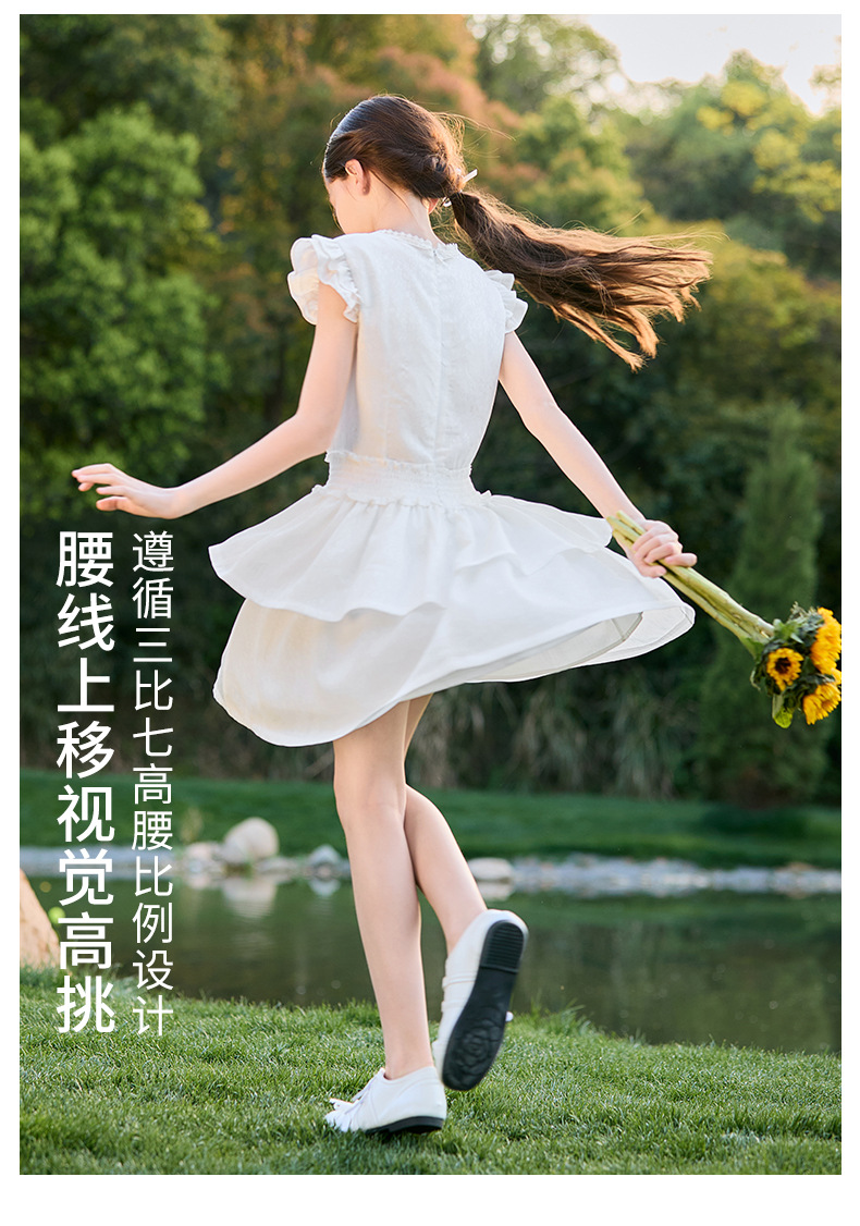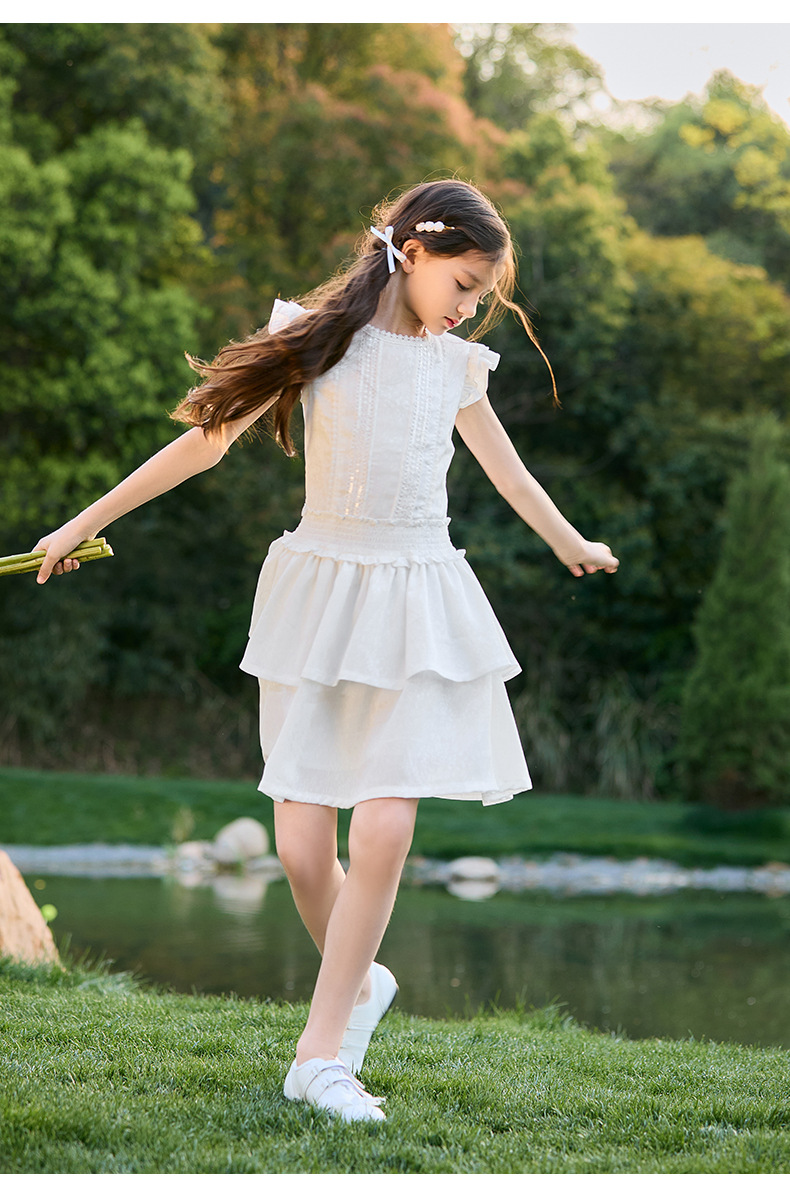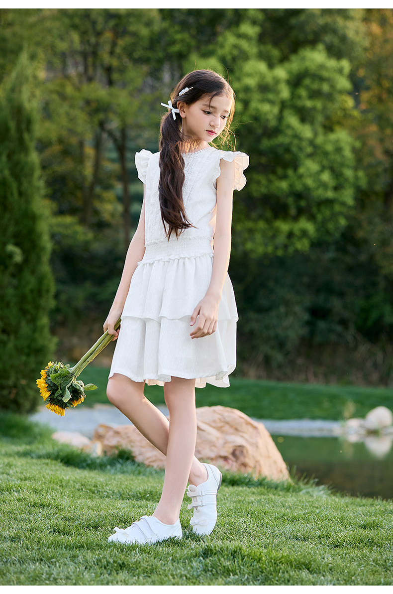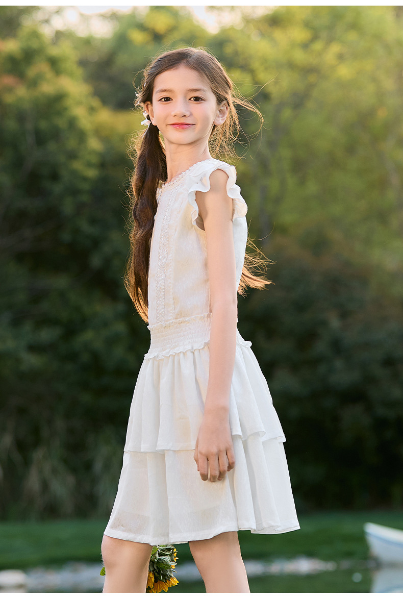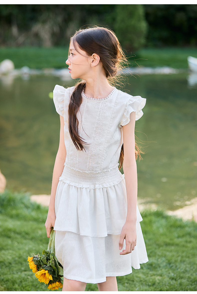 여아 작은 플라잉 슬리브 케이크 스커트 2025 여름 신작 중대형 어린이 프렌치 소녀 드레스 여름 스타일