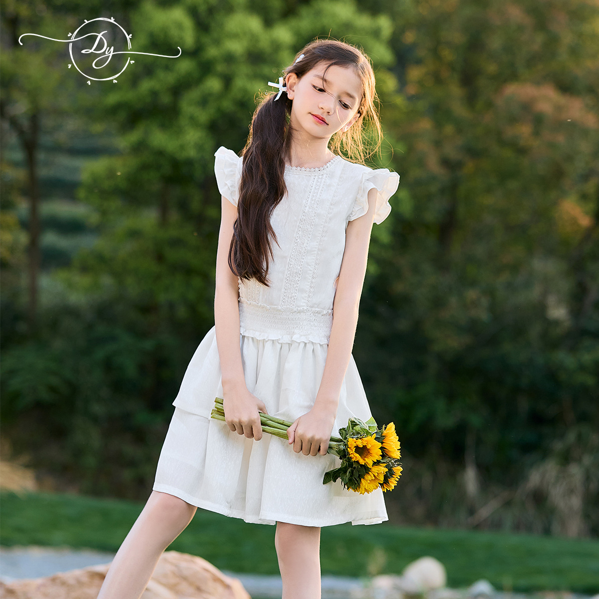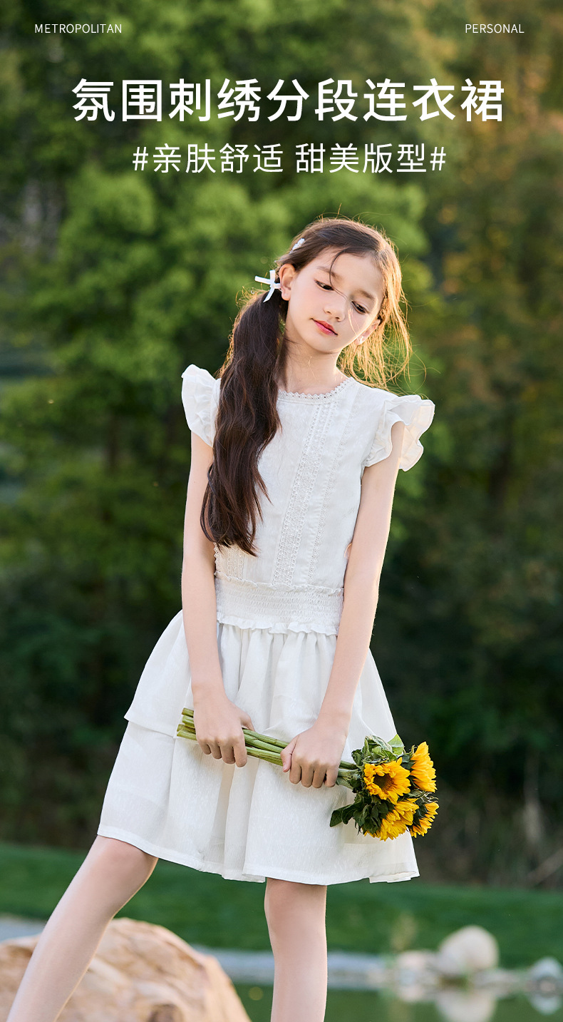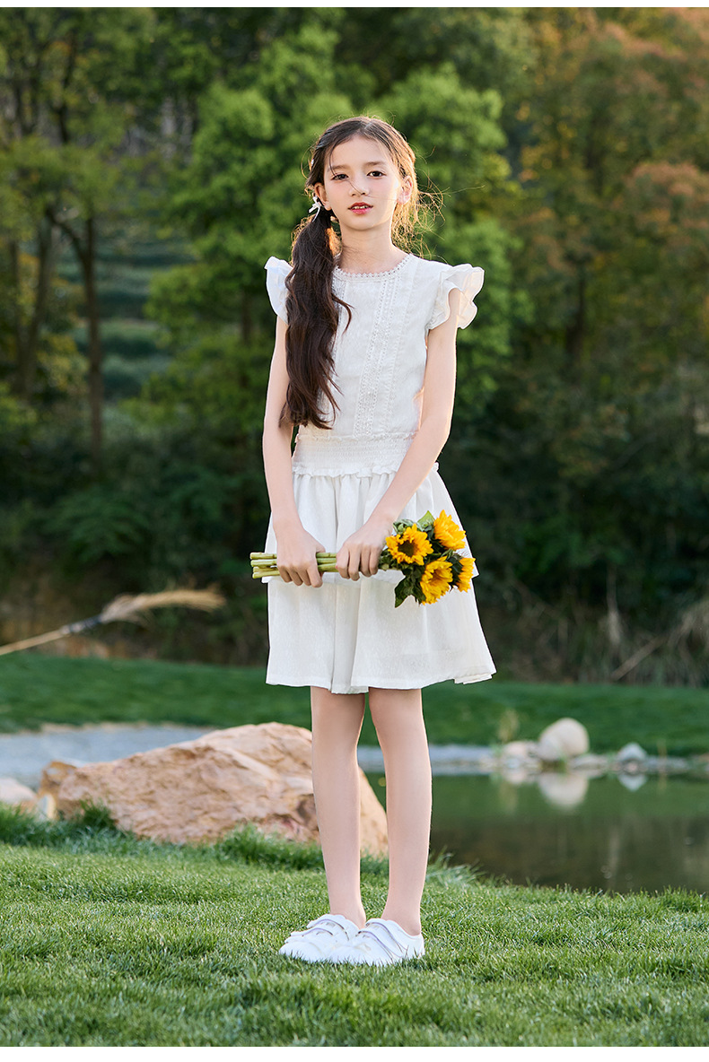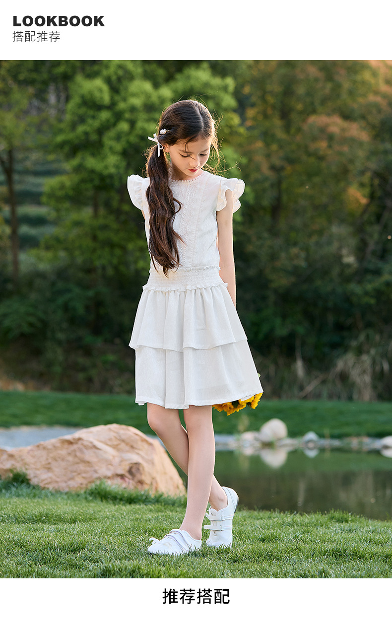 여아 작은 플라잉 슬리브 케이크 스커트 2025 여름 신작 중대형 어린이 프렌치 소녀 드레스 여름 스타일