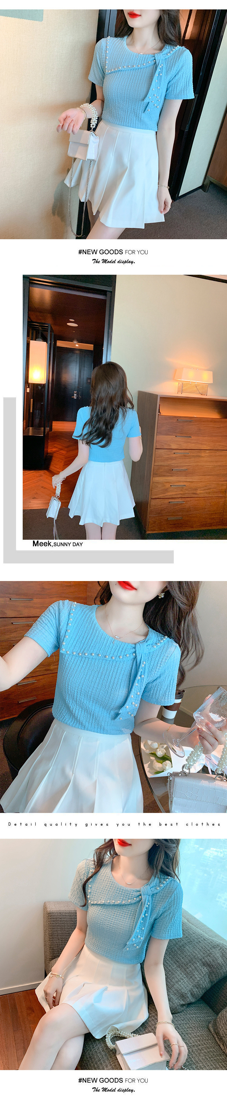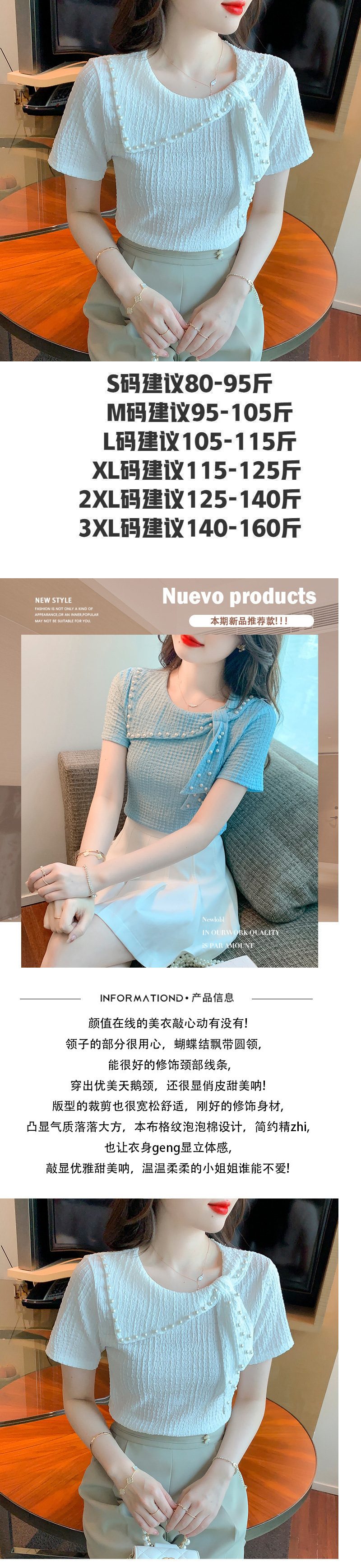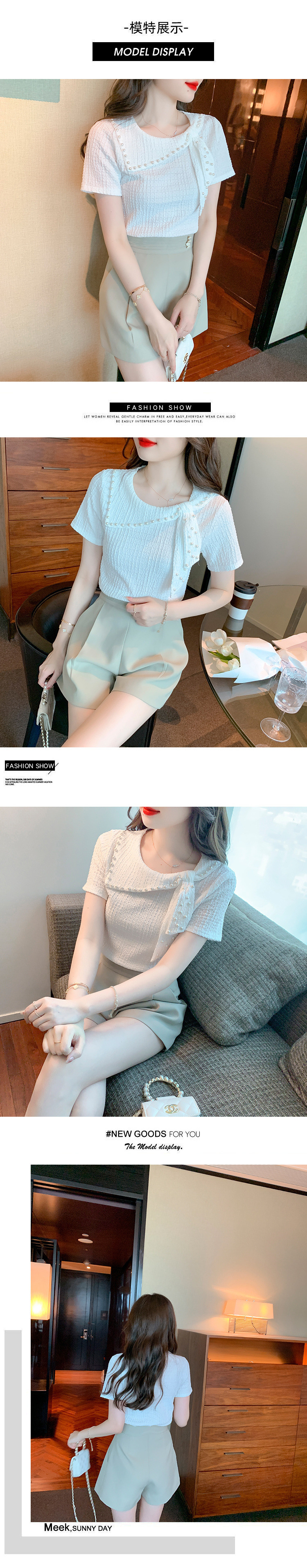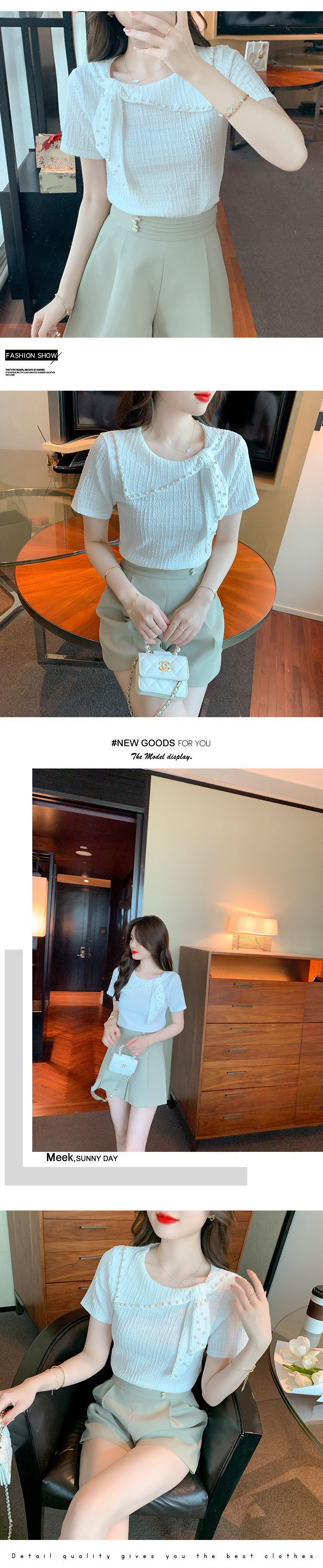 Xiaoxiangfeng 쉬폰 셔츠 여성 여름 반팔 기질 서양식 셔츠 아름답고 패셔너블한 구슬 장식 독특하고 독특한 셔츠스토어 가기