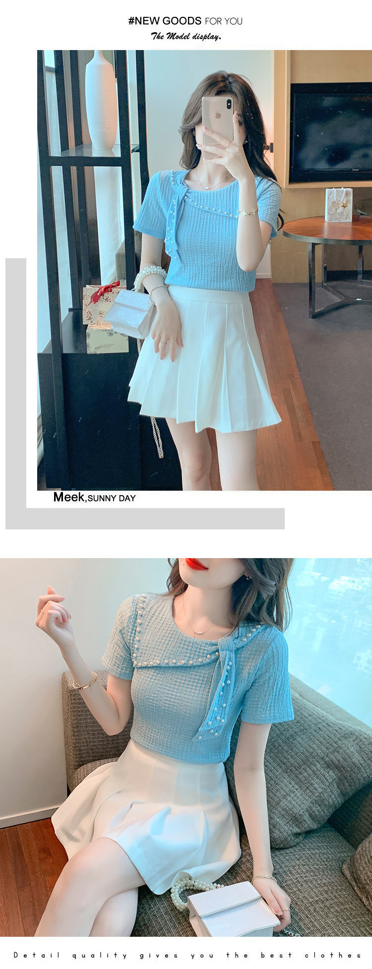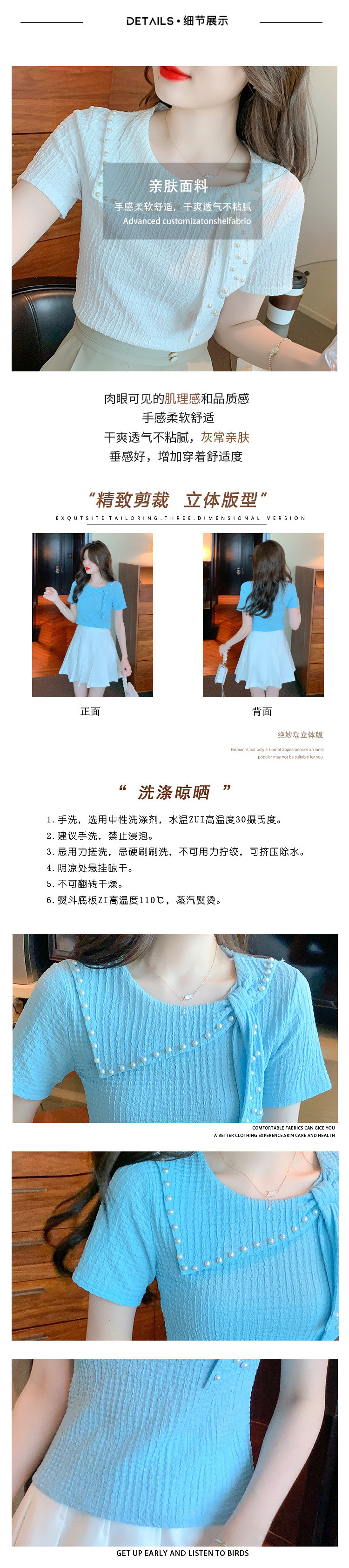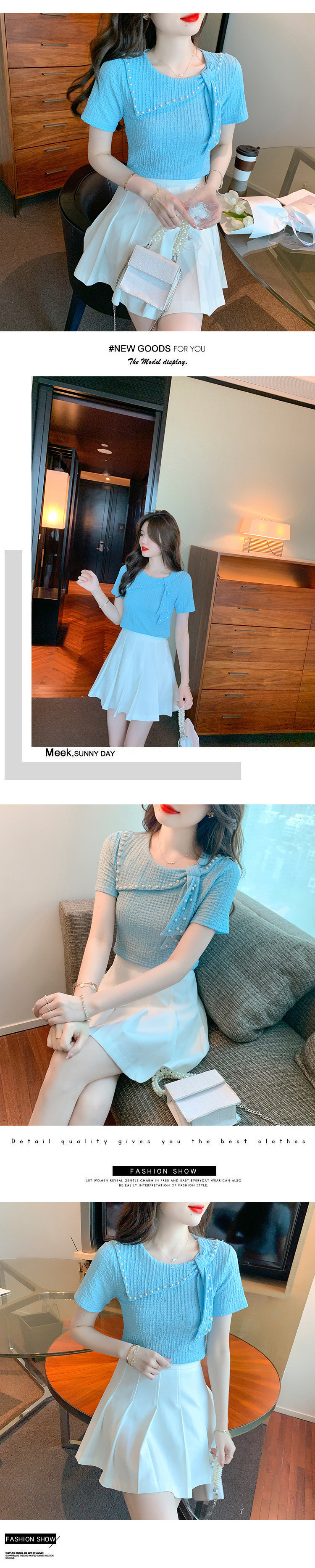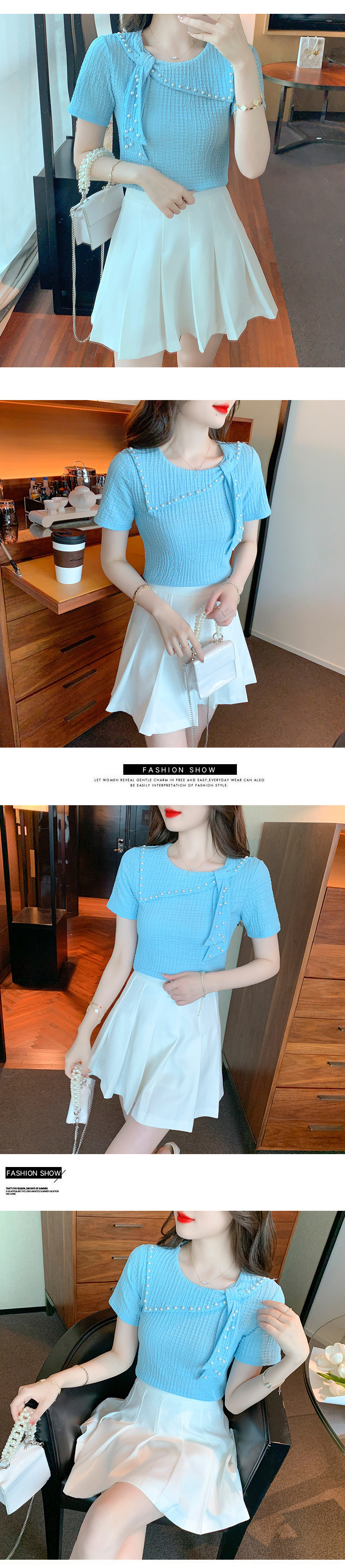 Xiaoxiangfeng 쉬폰 셔츠 여성 여름 반팔 기질 서양식 셔츠 아름답고 패셔너블한 구슬 장식 독특하고 독특한 셔츠스토어 가기