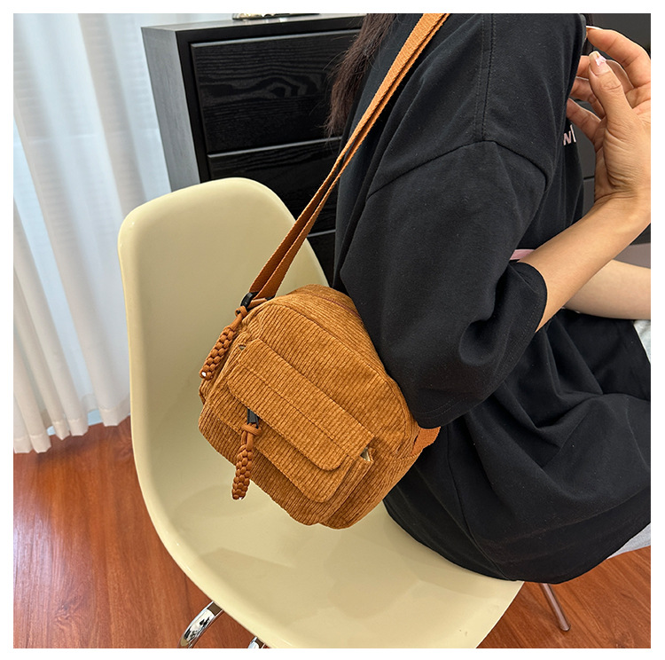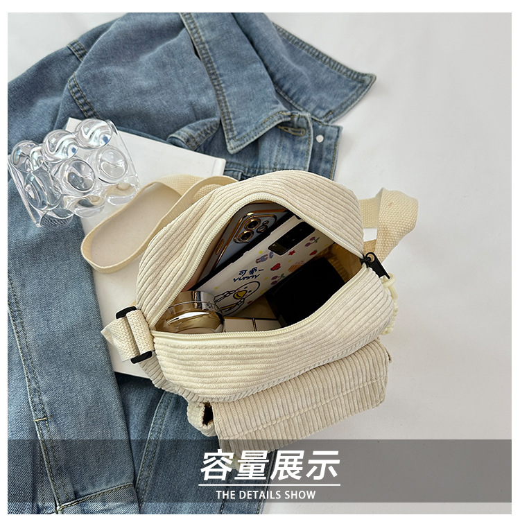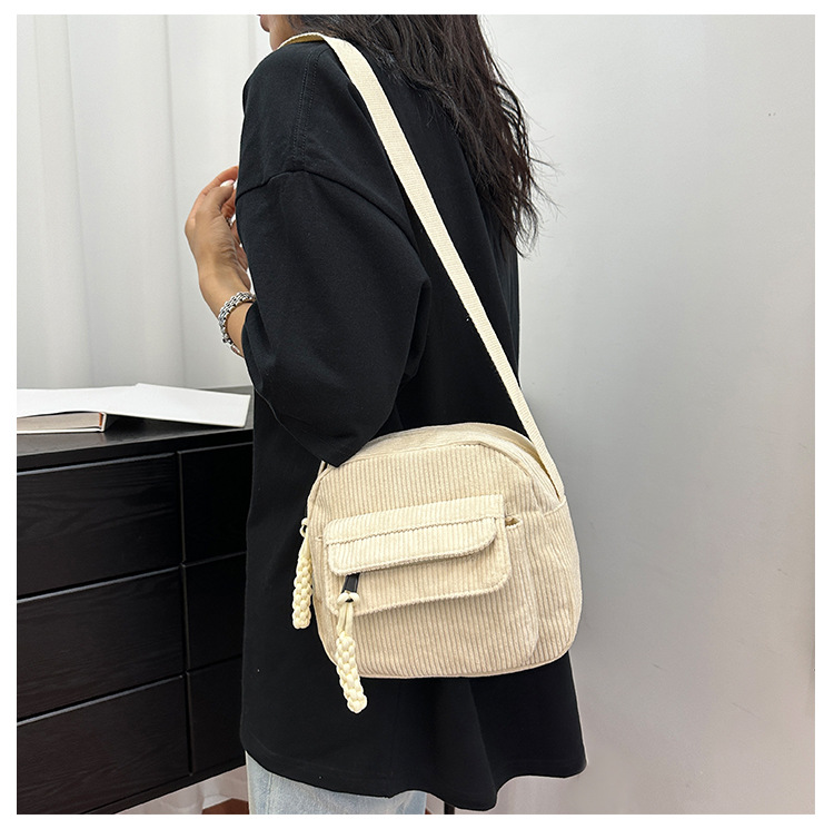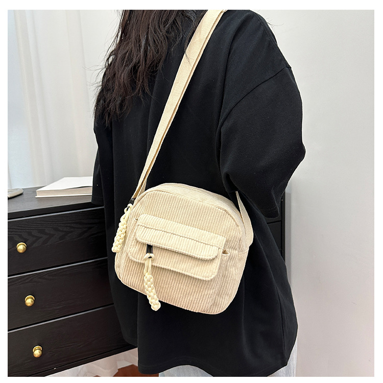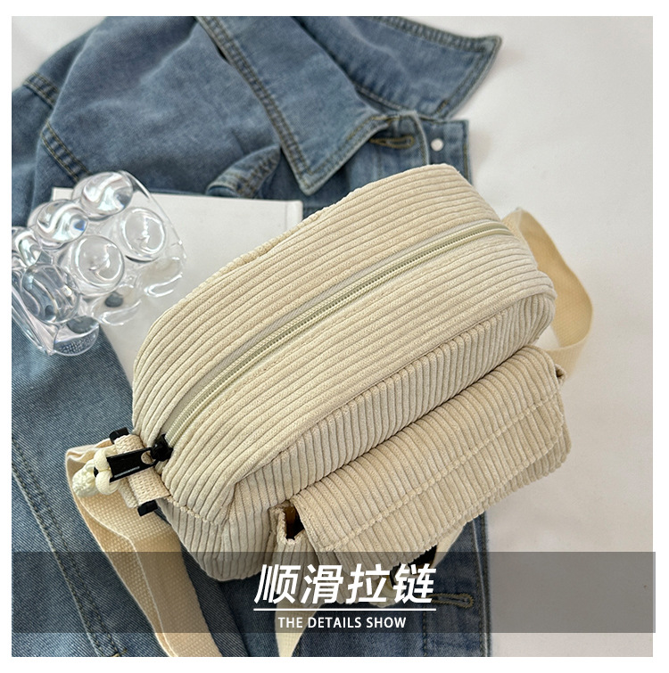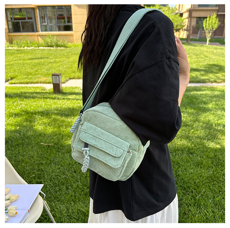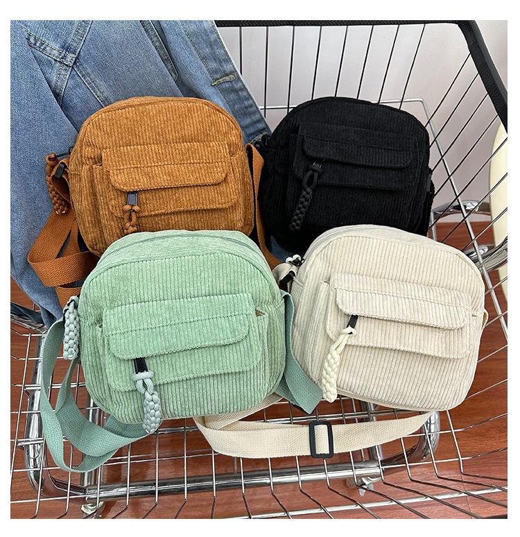 국경 간 코듀로이 새로운 스타일 심플하고 세련된 솔리드 컬러 코듀로이 가방 캠퍼스 스타일 소녀의 어깨 크로스 바디 작은 가방 유행스토어 가기