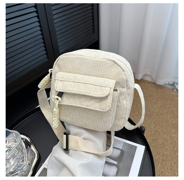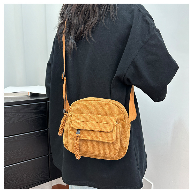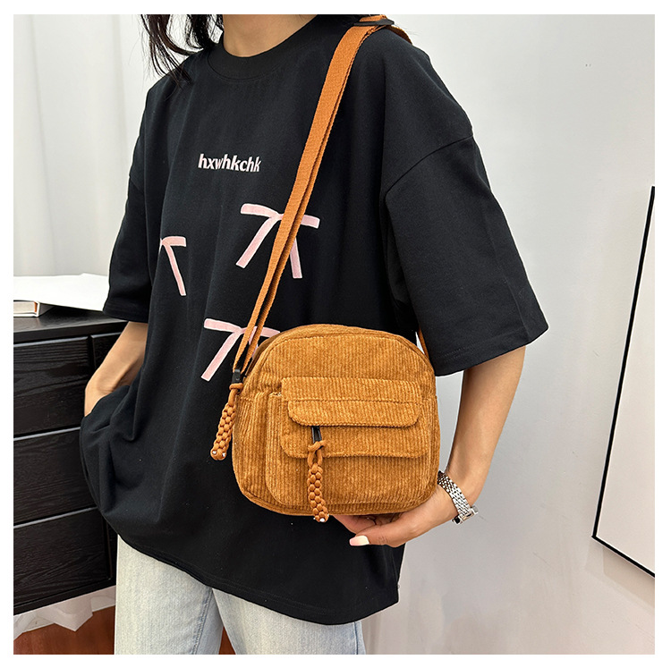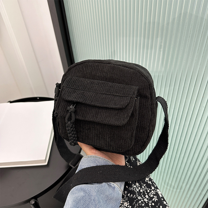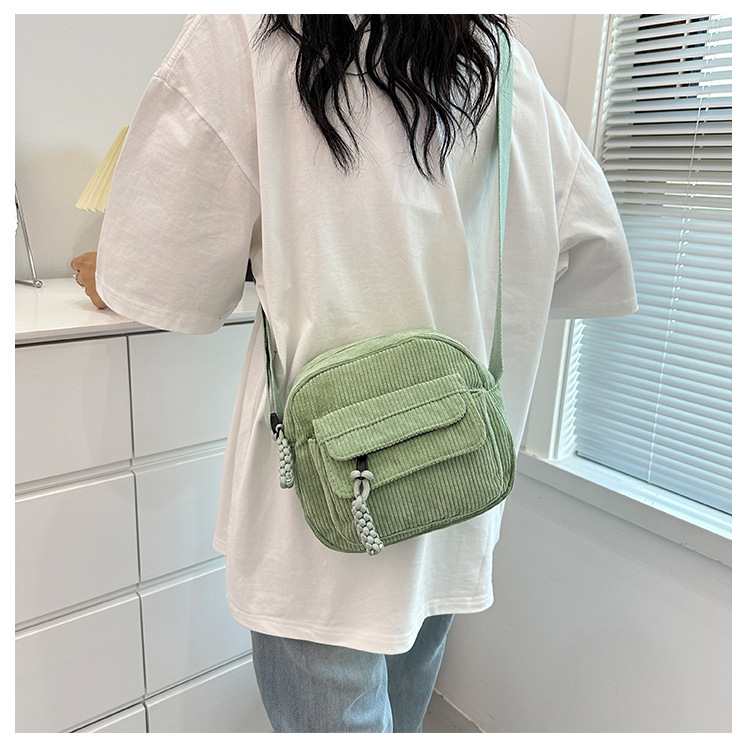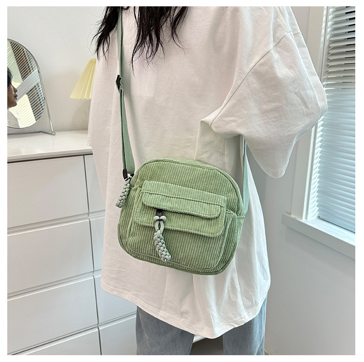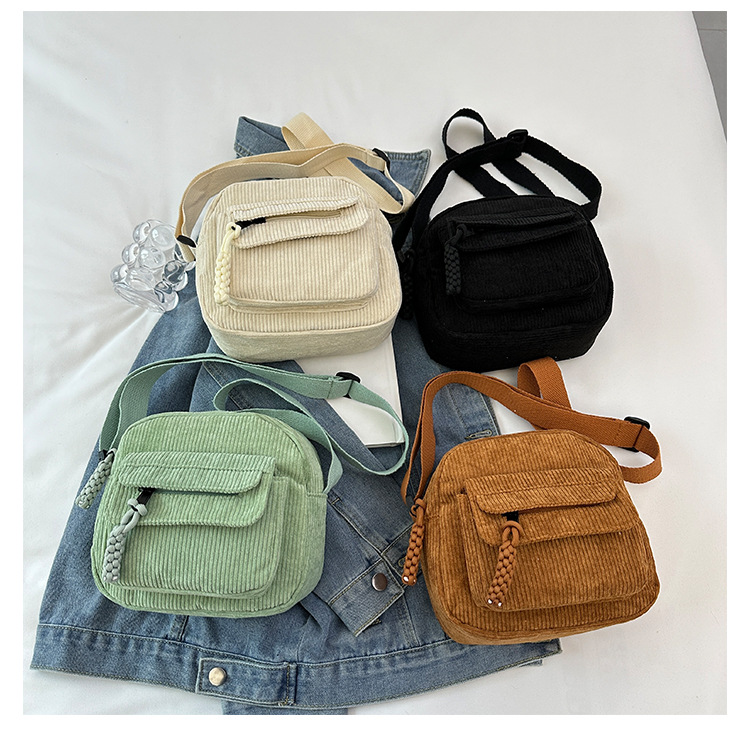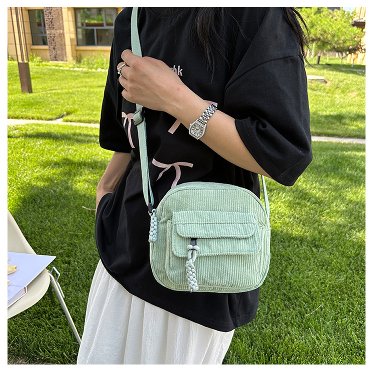 국경 간 코듀로이 새로운 스타일 심플하고 세련된 솔리드 컬러 코듀로이 가방 캠퍼스 스타일 소녀의 어깨 크로스 바디 작은 가방 유행