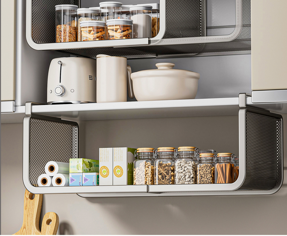 주방 보관 랙 보관 아티팩트 캐비닛 계층화 된 개폐식 교수형 바구니 다기능 교수형 캐비닛 하단 교수형 랙 조직 홀더