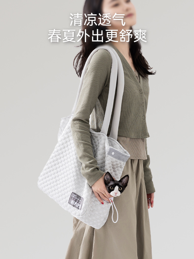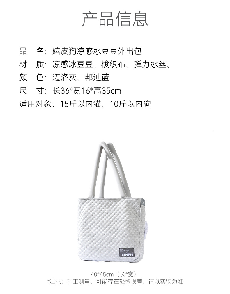 봄 여름 심플 아이스빈 쿨링 외출 고양이 가방, 강아지 가방, 휴대용 숄더백, 조절 가능한 조임끈, 탐지 가능한 애완동물 가방스토어 가기