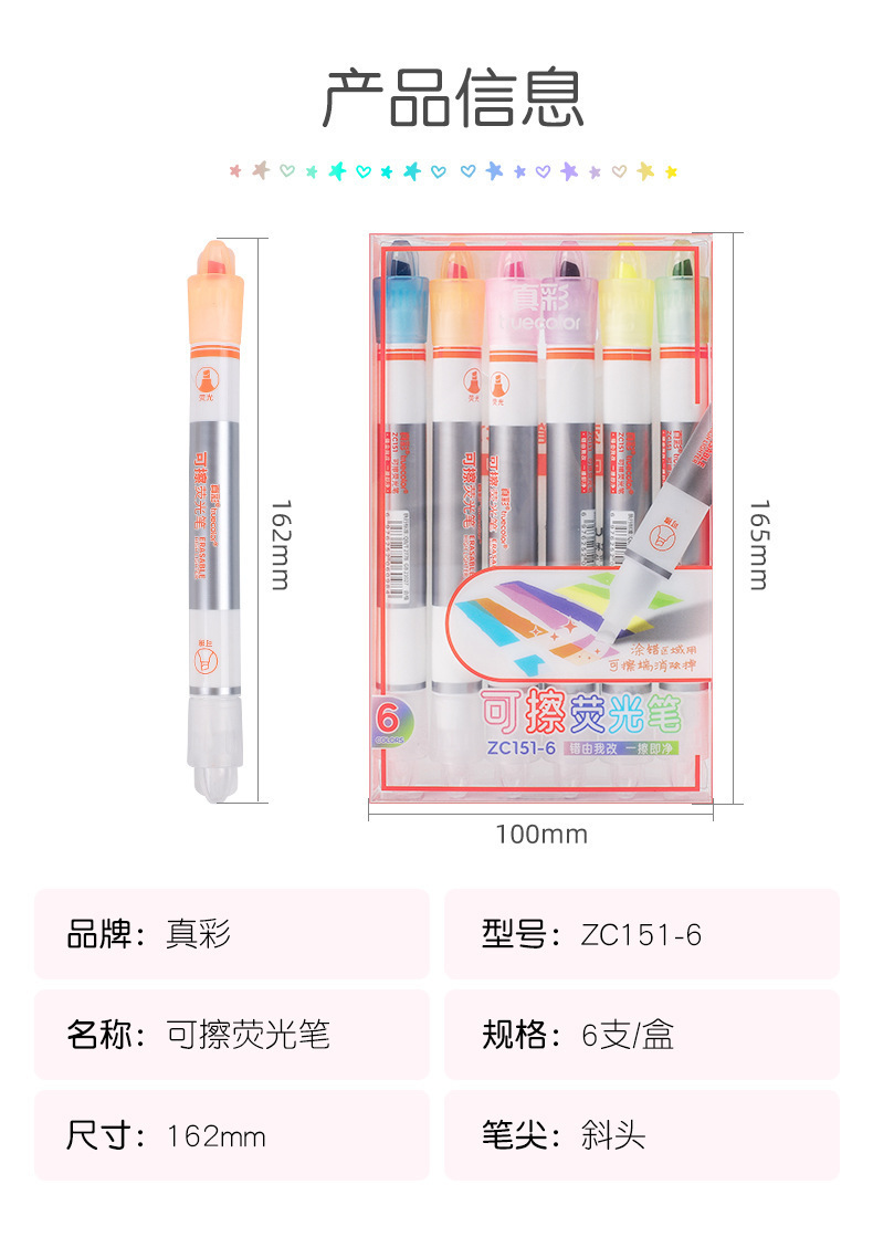트루 컬러 지울 수있는 하이라이터 마킹 펜 학생 필기 문구 마킹 펜 컬러 더블 헤드 마킹 포커스 컨투어 펜스토어 가기