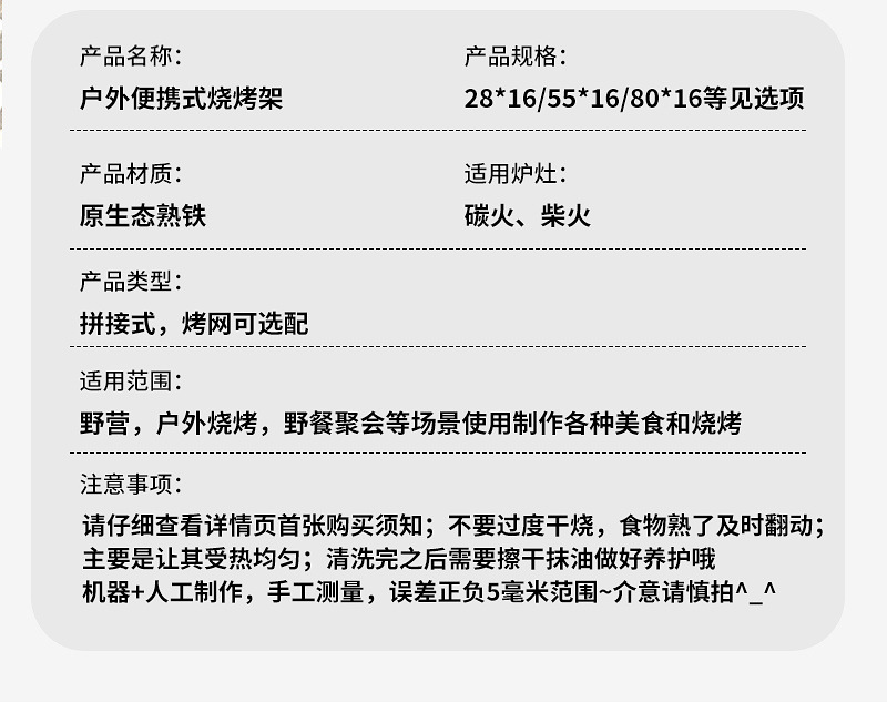 • 야외 바베큐 그릴 80x16 두께 3mm + [그릴망 3개]