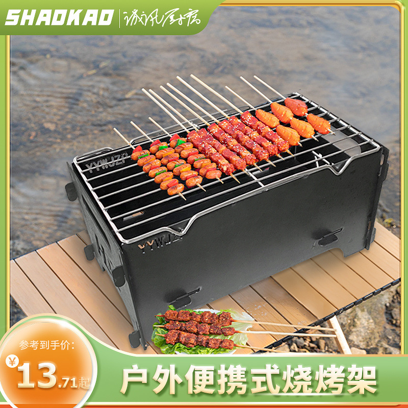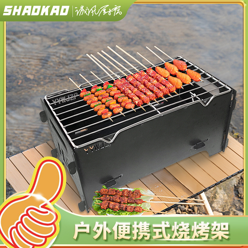 가정용 야외 바베큐 그릴 접이식 숯불 스톨 휴대용 두껍고 넓은 바베큐 그릴스토어 가기