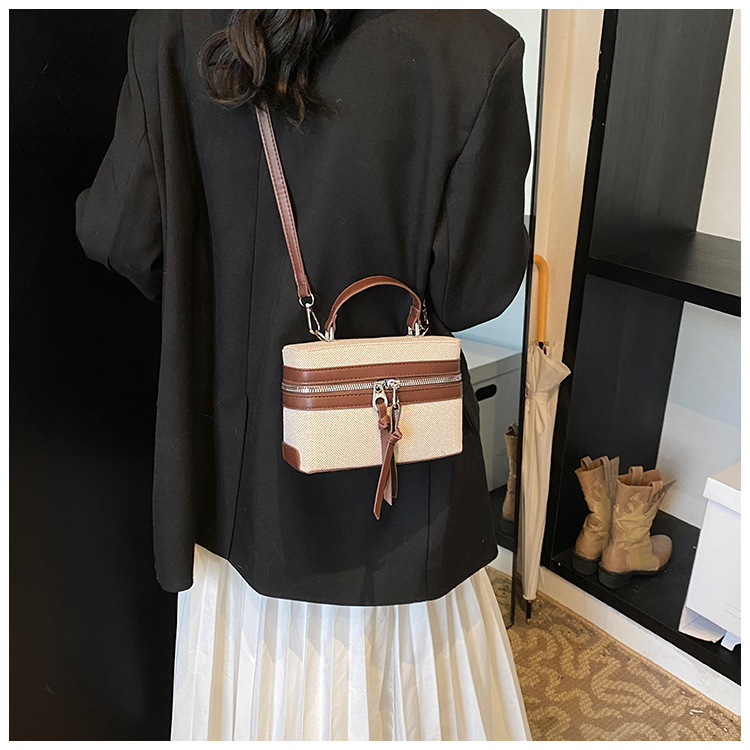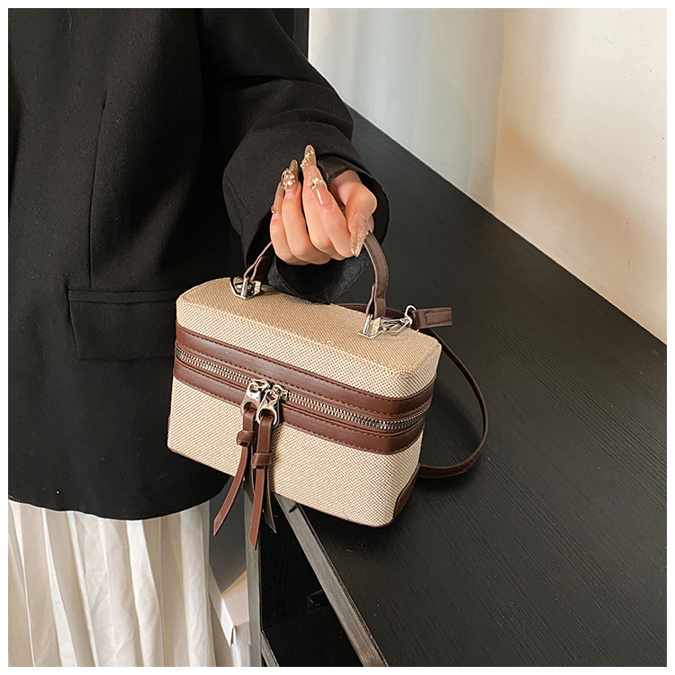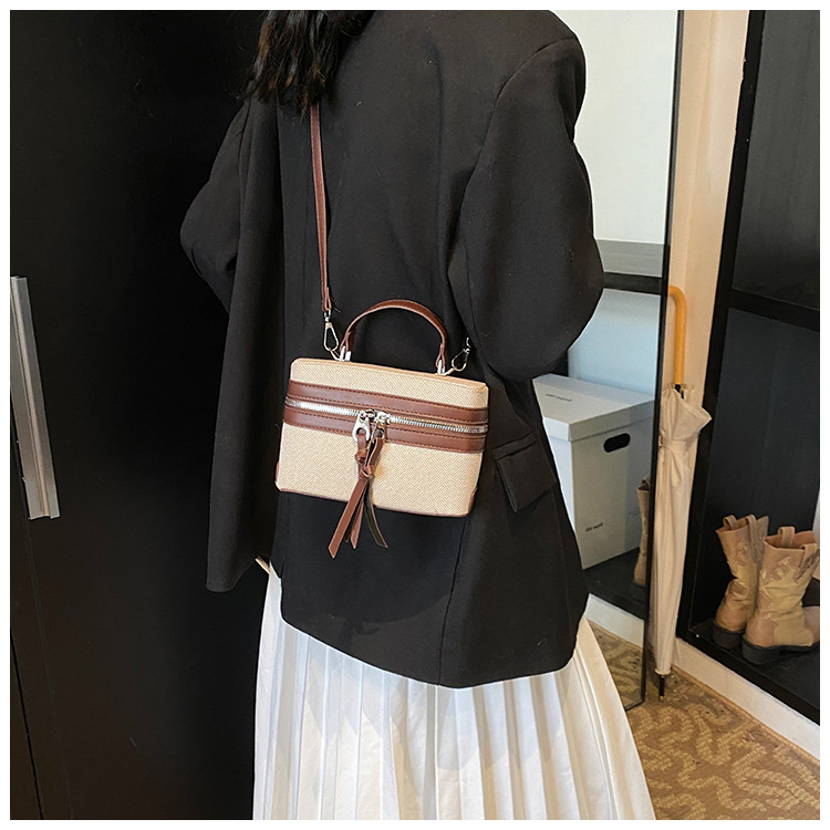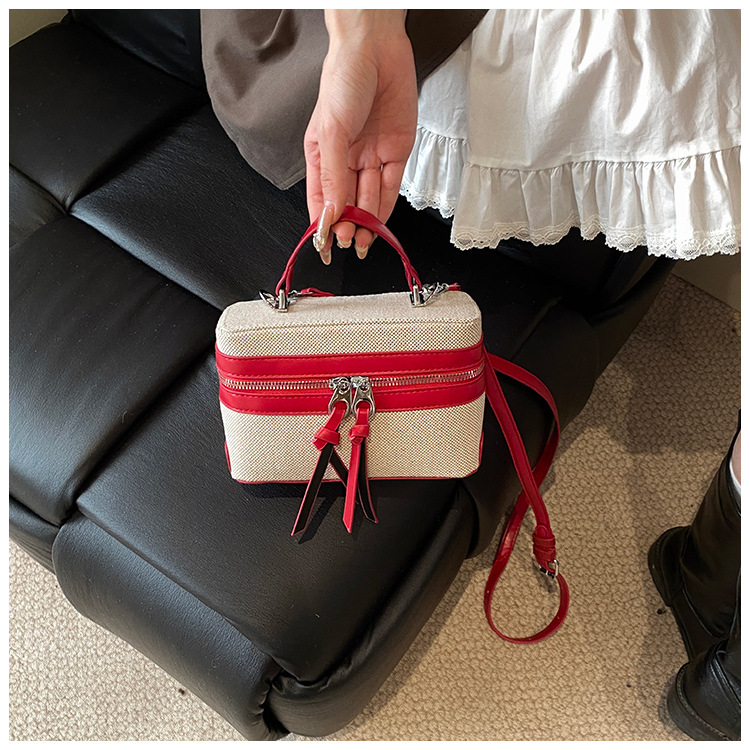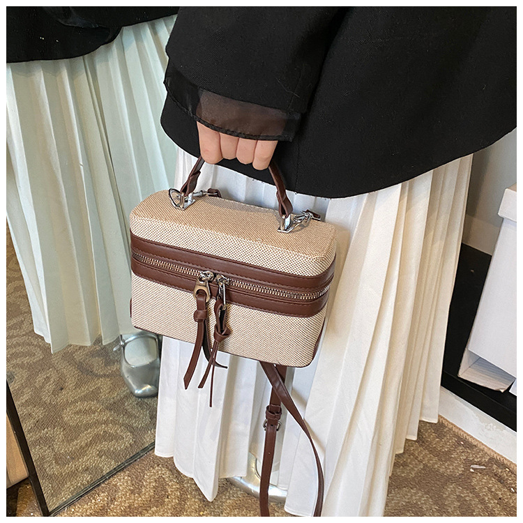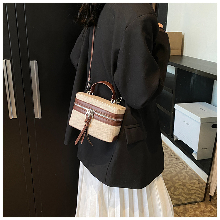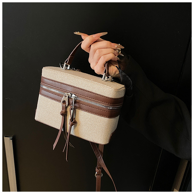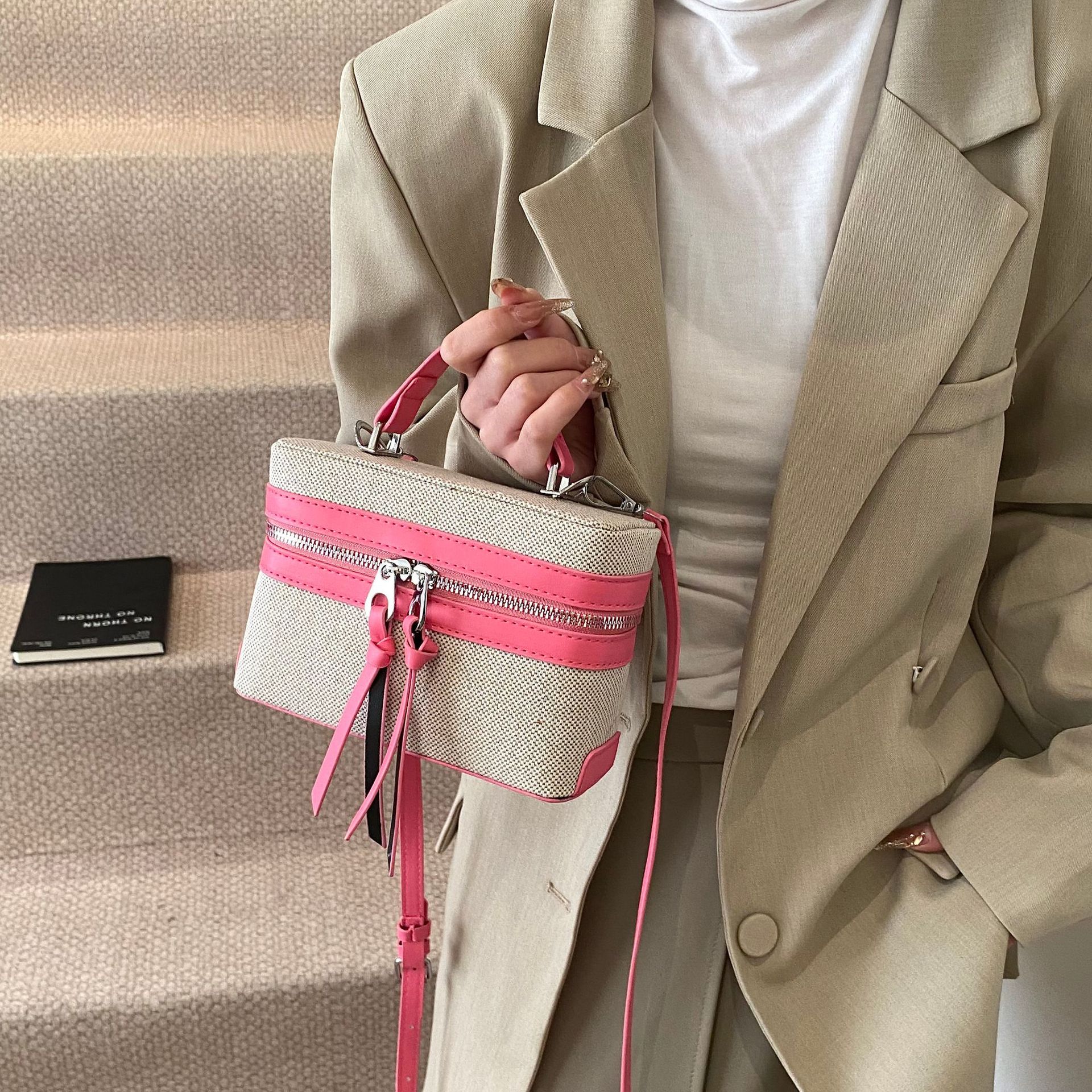 2025 봄과 여름 새로운 유행 하이 엔드 센스 짠 대조 컬러 스티칭 박스 백 모든 경기 휴대용 어깨 크로스 바디 여성용 가방