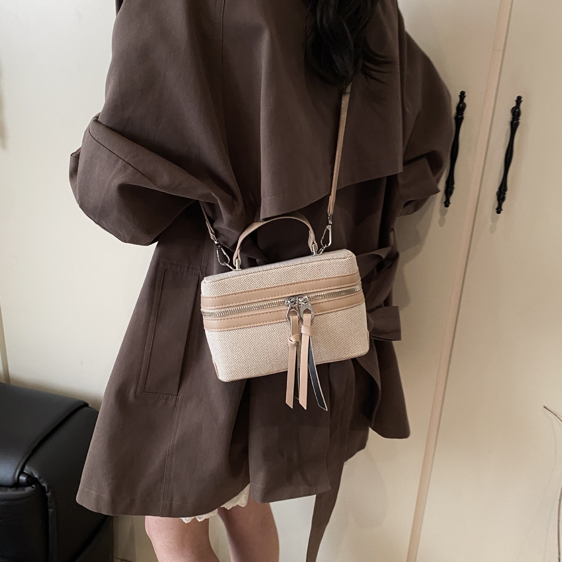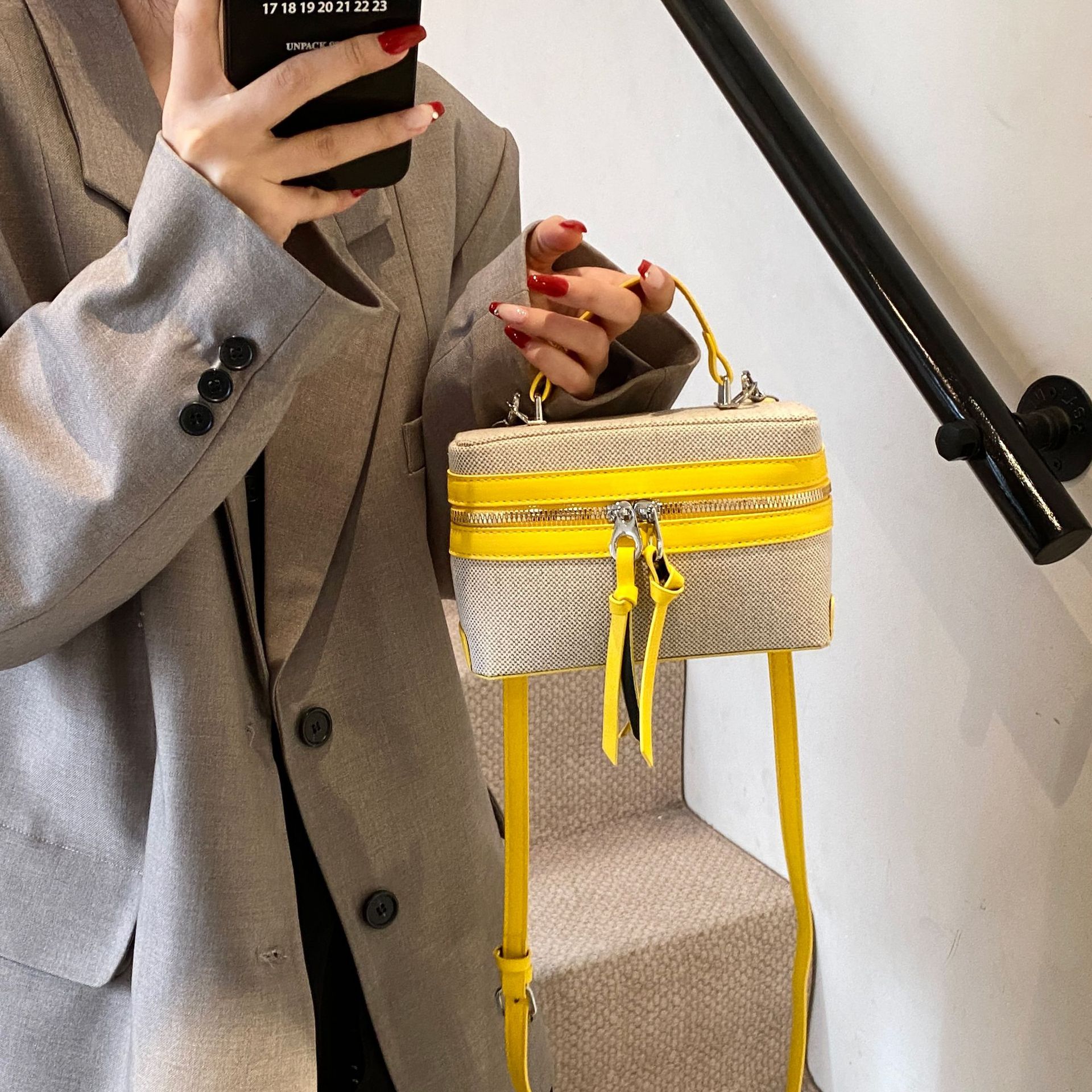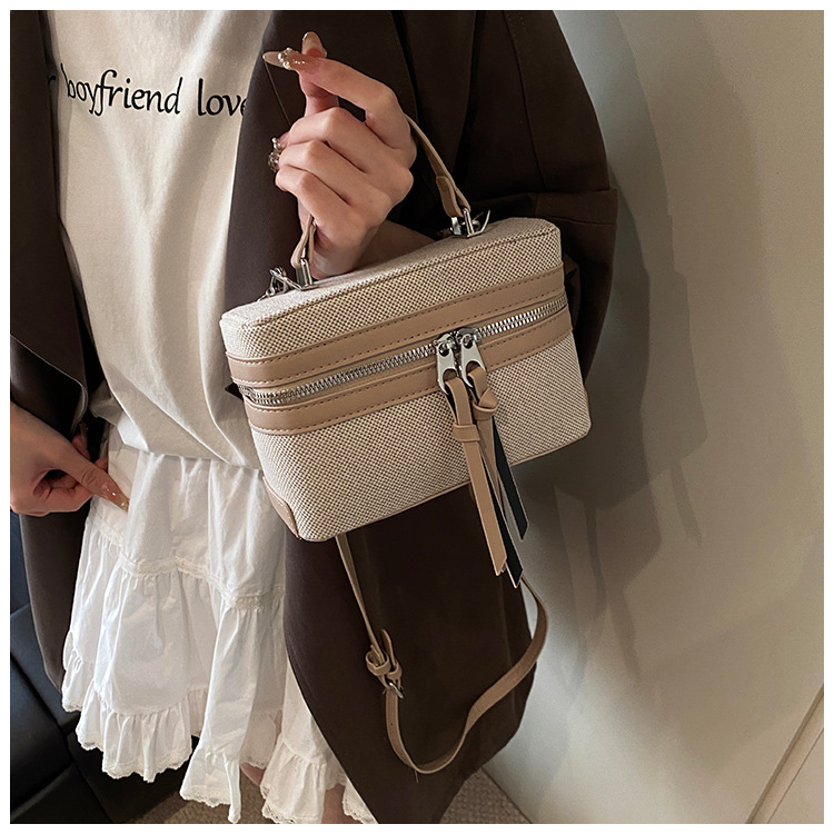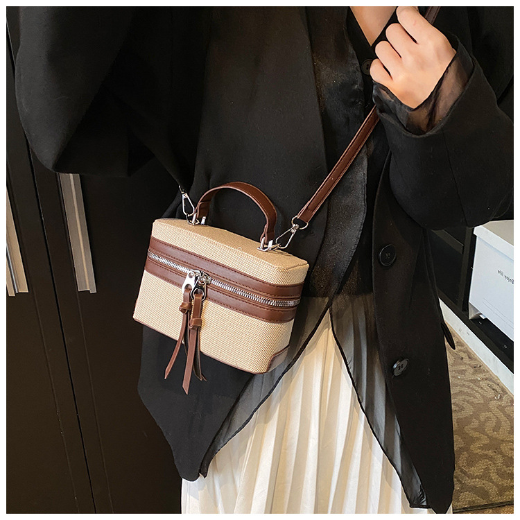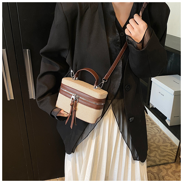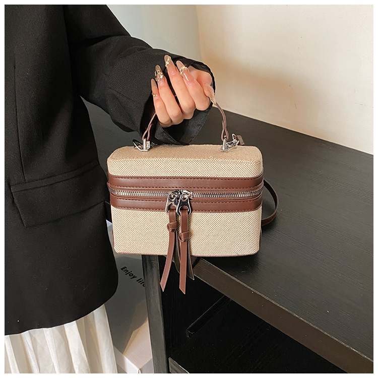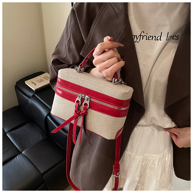 2025 봄과 여름 새로운 유행 하이 엔드 센스 짠 대조 컬러 스티칭 박스 백 모든 경기 휴대용 어깨 크로스 바디 여성용 가방