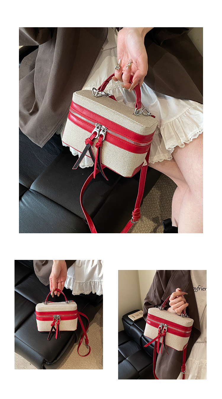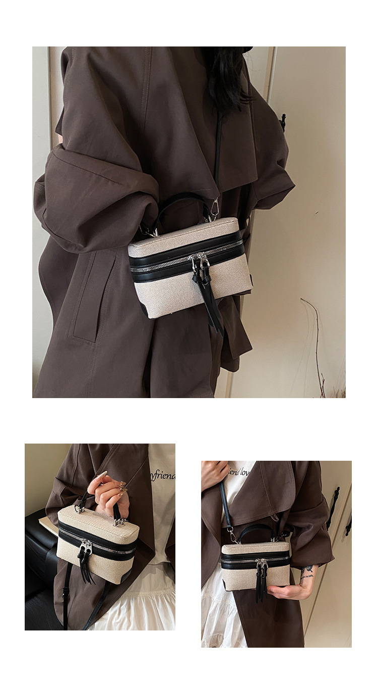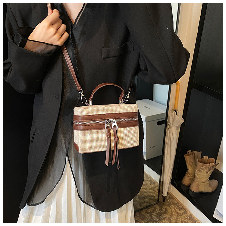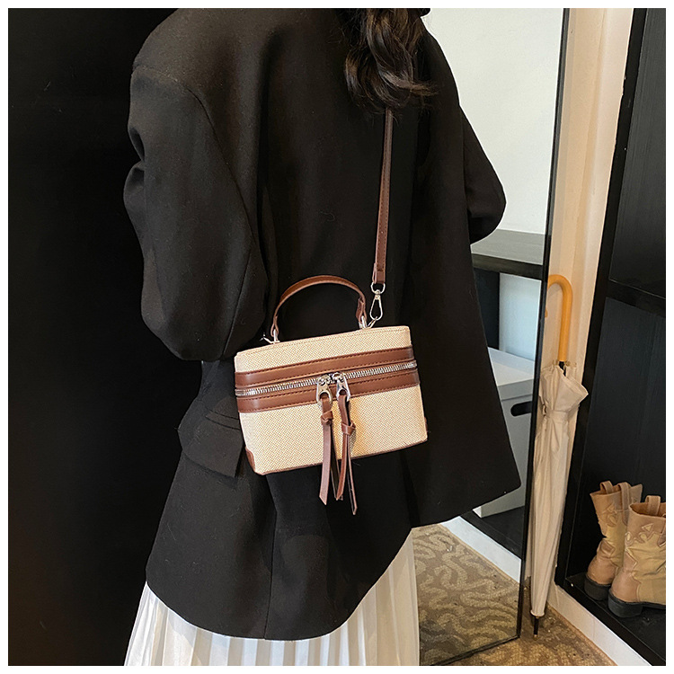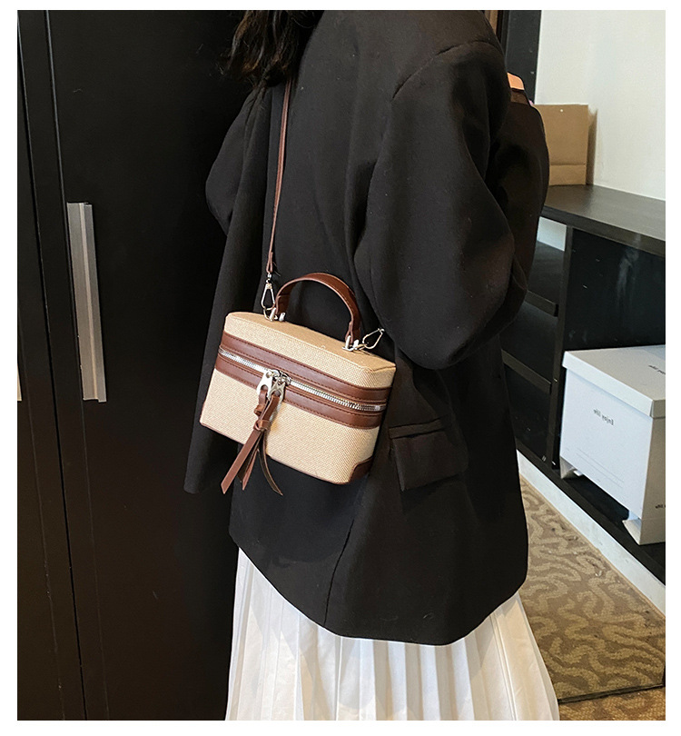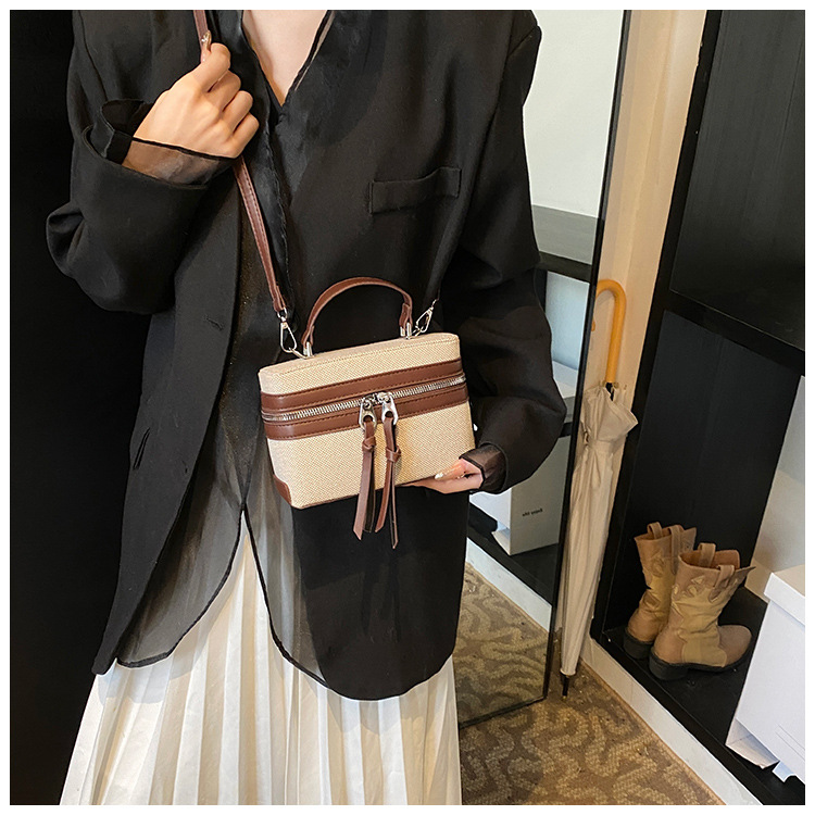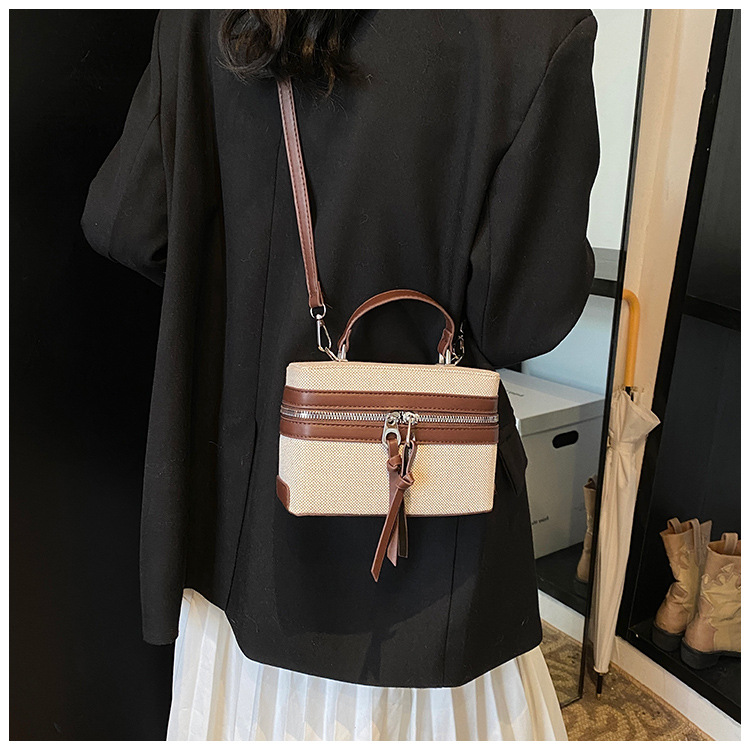 2025 봄과 여름 새로운 유행 하이 엔드 센스 짠 대조 컬러 스티칭 박스 백 모든 경기 휴대용 어깨 크로스 바디 여성용 가방