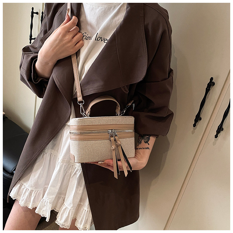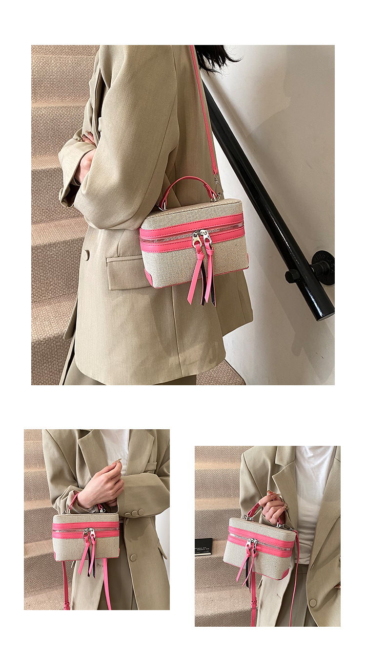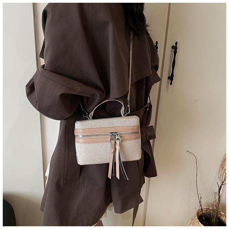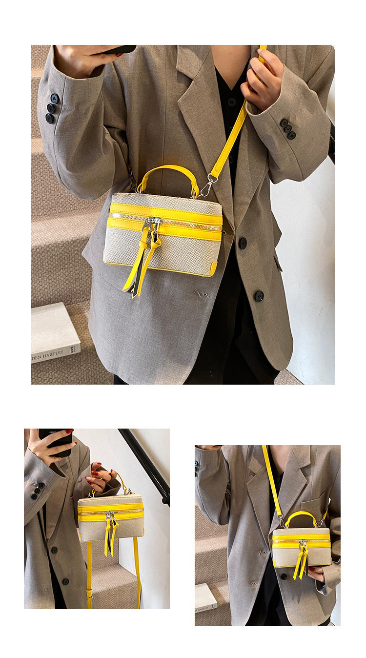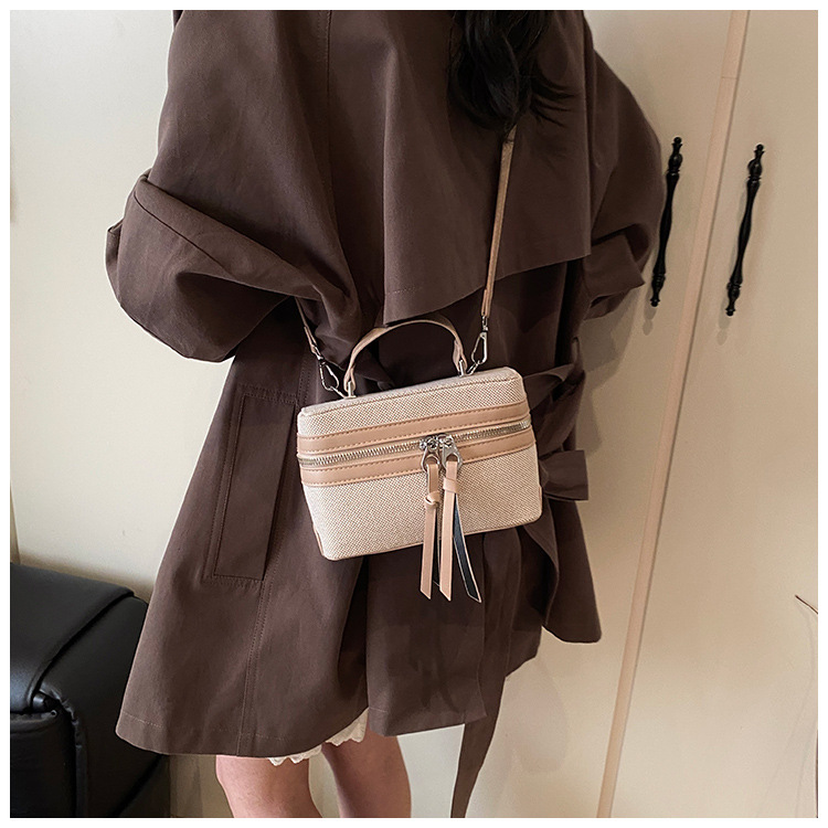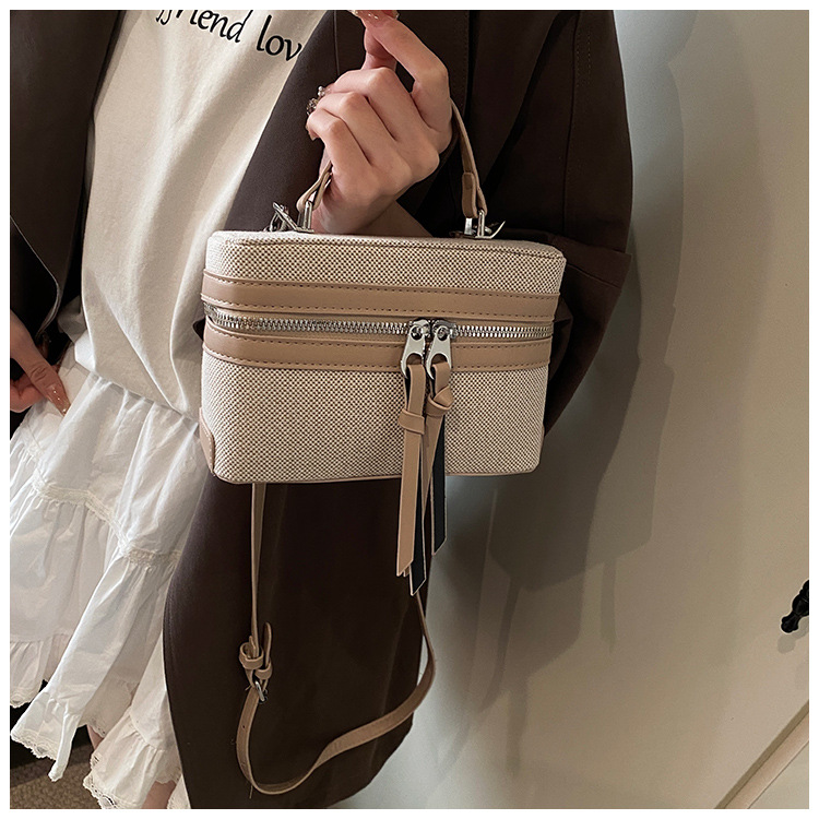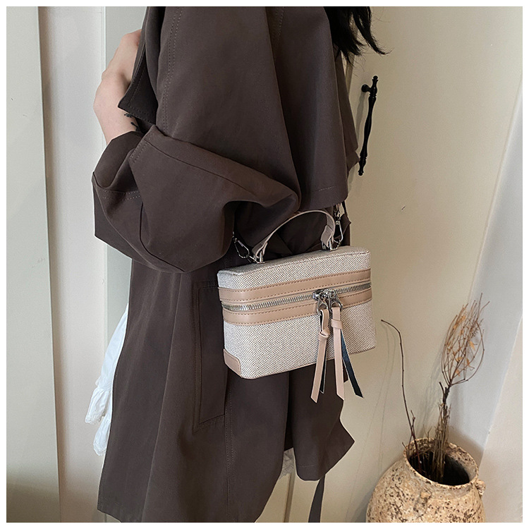 2025 봄과 여름 새로운 유행 하이 엔드 센스 짠 대조 컬러 스티칭 박스 백 모든 경기 휴대용 어깨 크로스 바디 여성용 가방