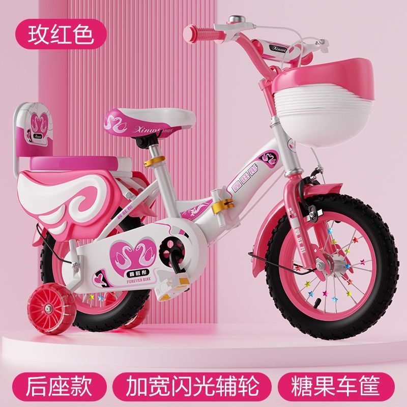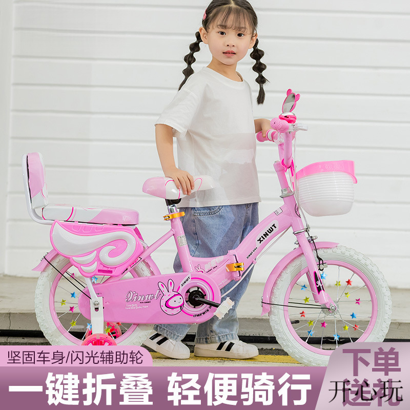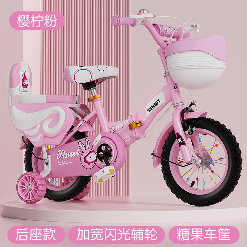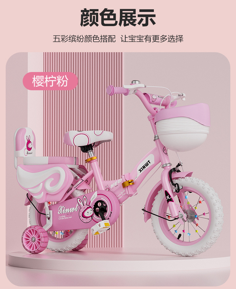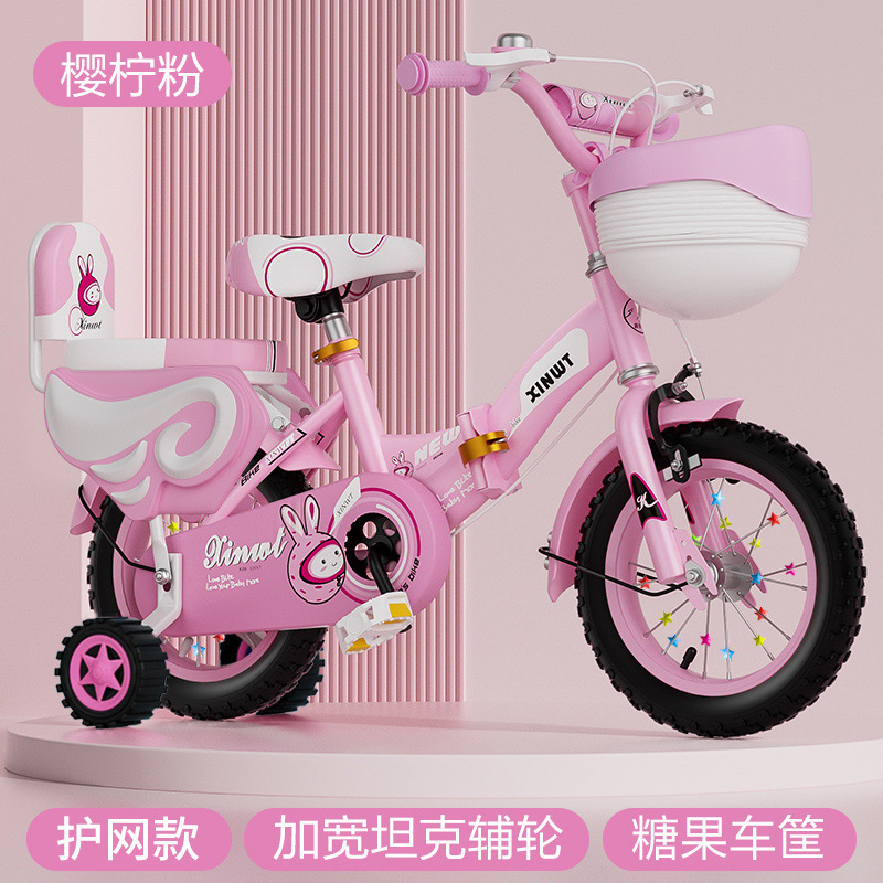 • 핑크 접이식 업그레이드 바구니 일반 바퀴 + 선물 가방 및 가드레일 - 16inch 5-6세에게 적합, 키 105-125