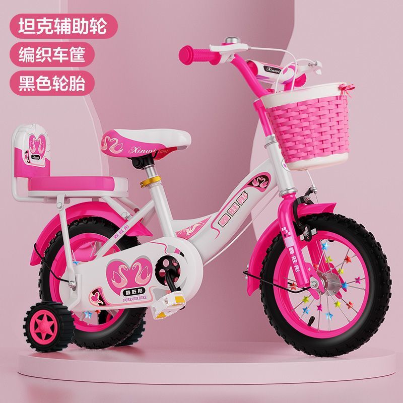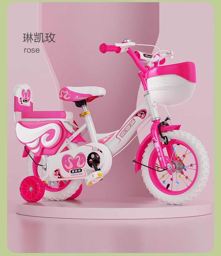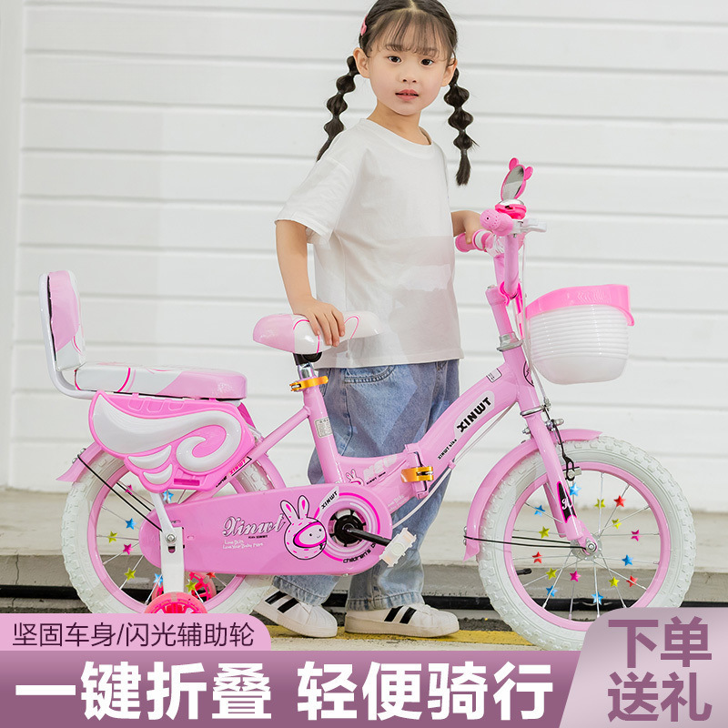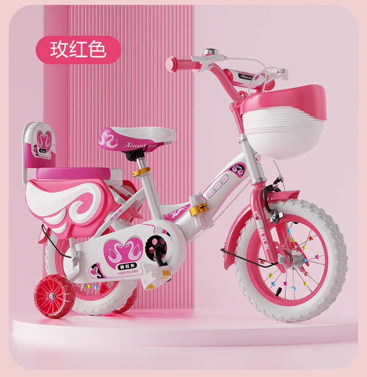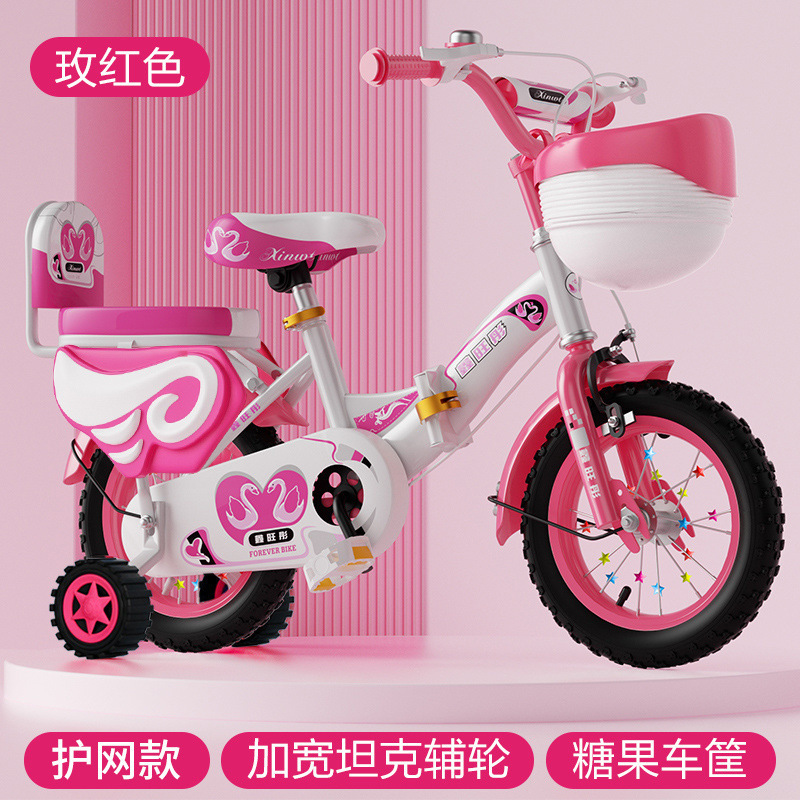 • 핑크 접이식 업그레이드 바구니 일반 바퀴 + 선물 가방 및 가드레일 - 16inch 5-6세에게 적합, 키 105-125