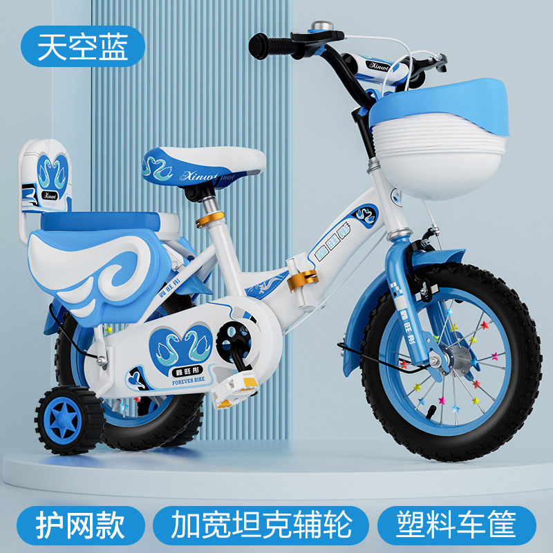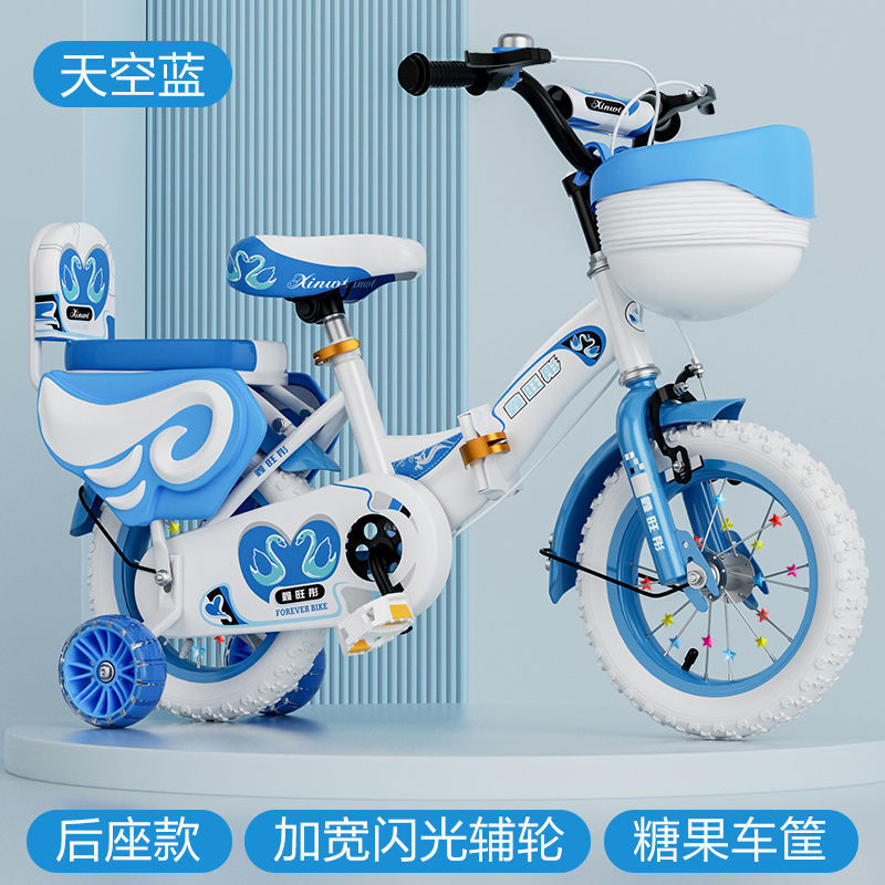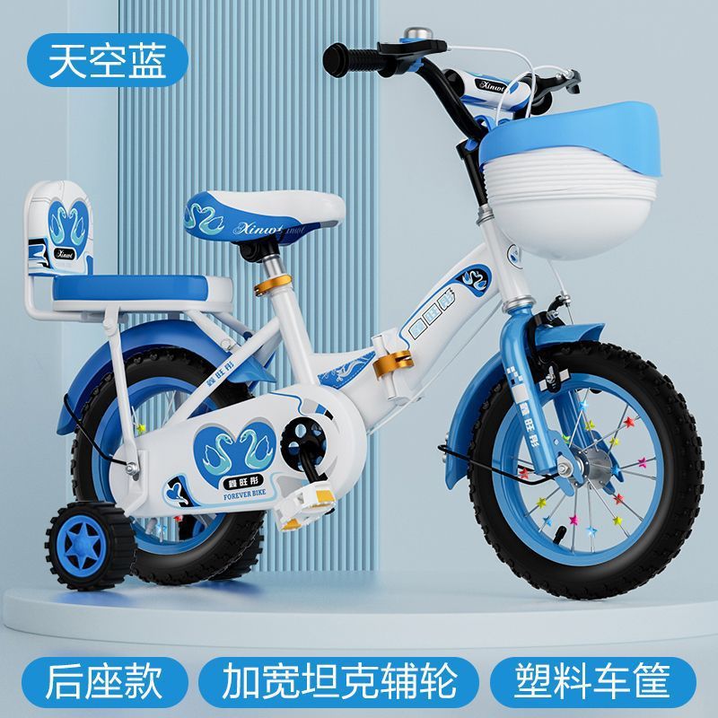 • 일반 바퀴가 포함된 하늘색 접이식 업그레이드 바구니 + 가드레일이 없는 선물 가방 - 16inch 5-6세에 적합, 키 105-125