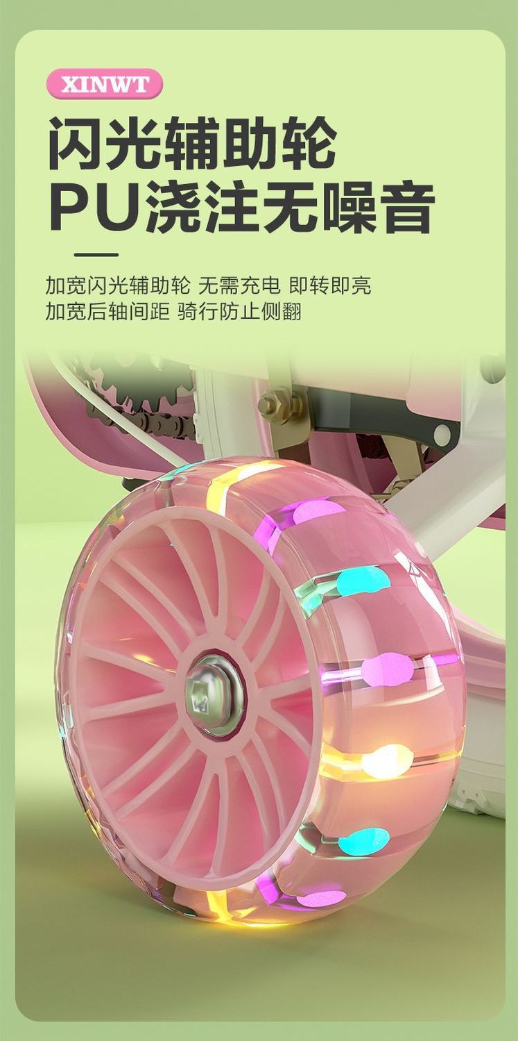 • 가드레일이 없는 핑크 일반 휠 + 선물 가방 - 20inch 7-9세, 키 125-140에 적합
