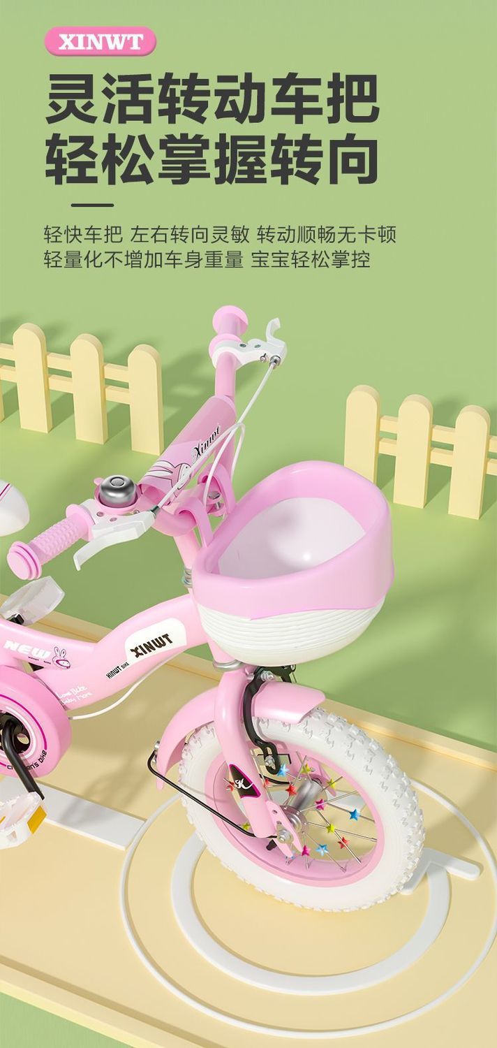 • 가드레일이 없는 일반 바퀴 + 선물 가방이 포함된 핑크색 접이식 업그레이드 바구니 - 12inch 2-3세에게 적합, 키 80-95
