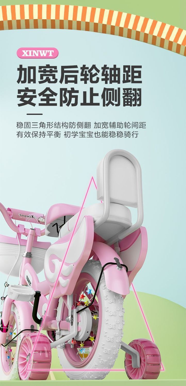 • 가드레일이 없는 핑크 일반 휠 + 선물 가방 - 12inch 2-3세에게 적합, 키 80-95