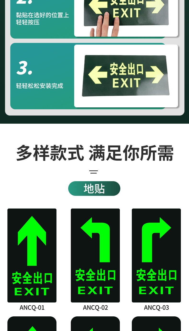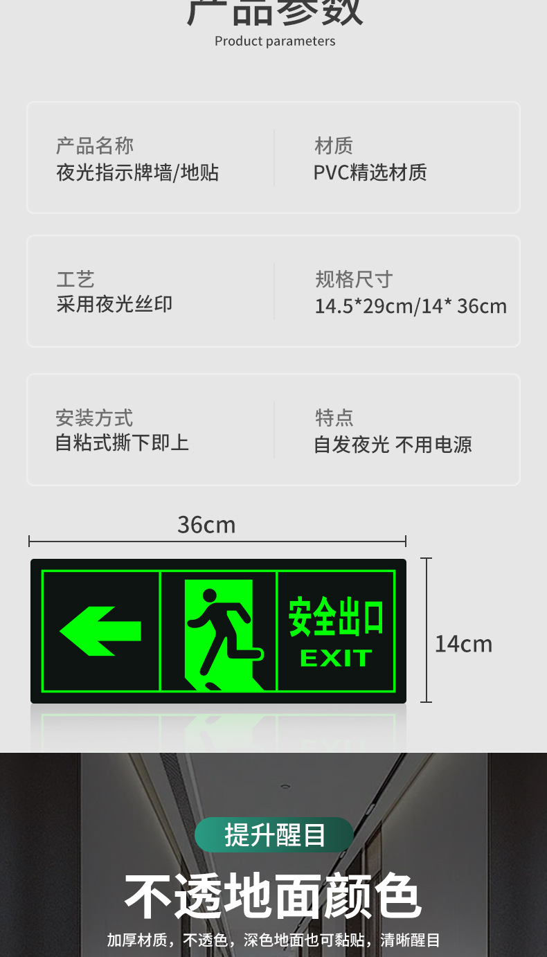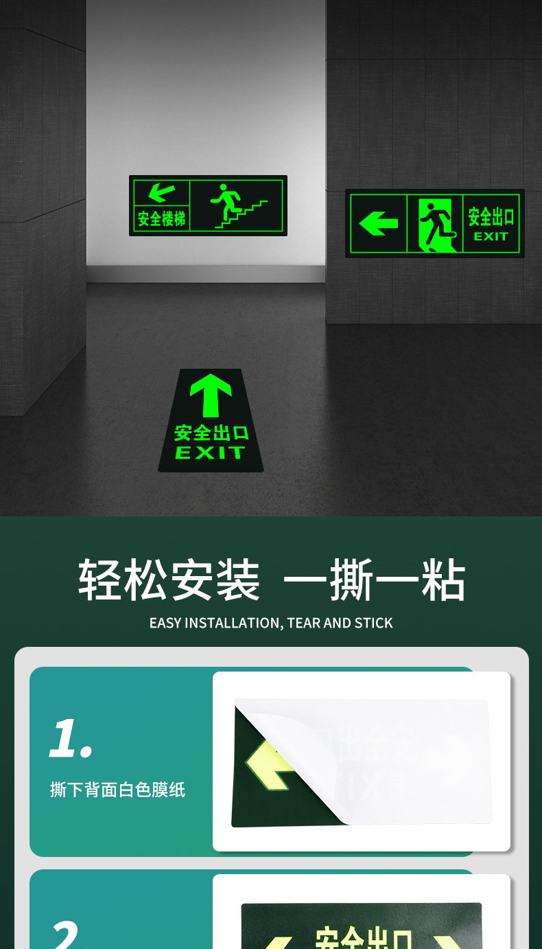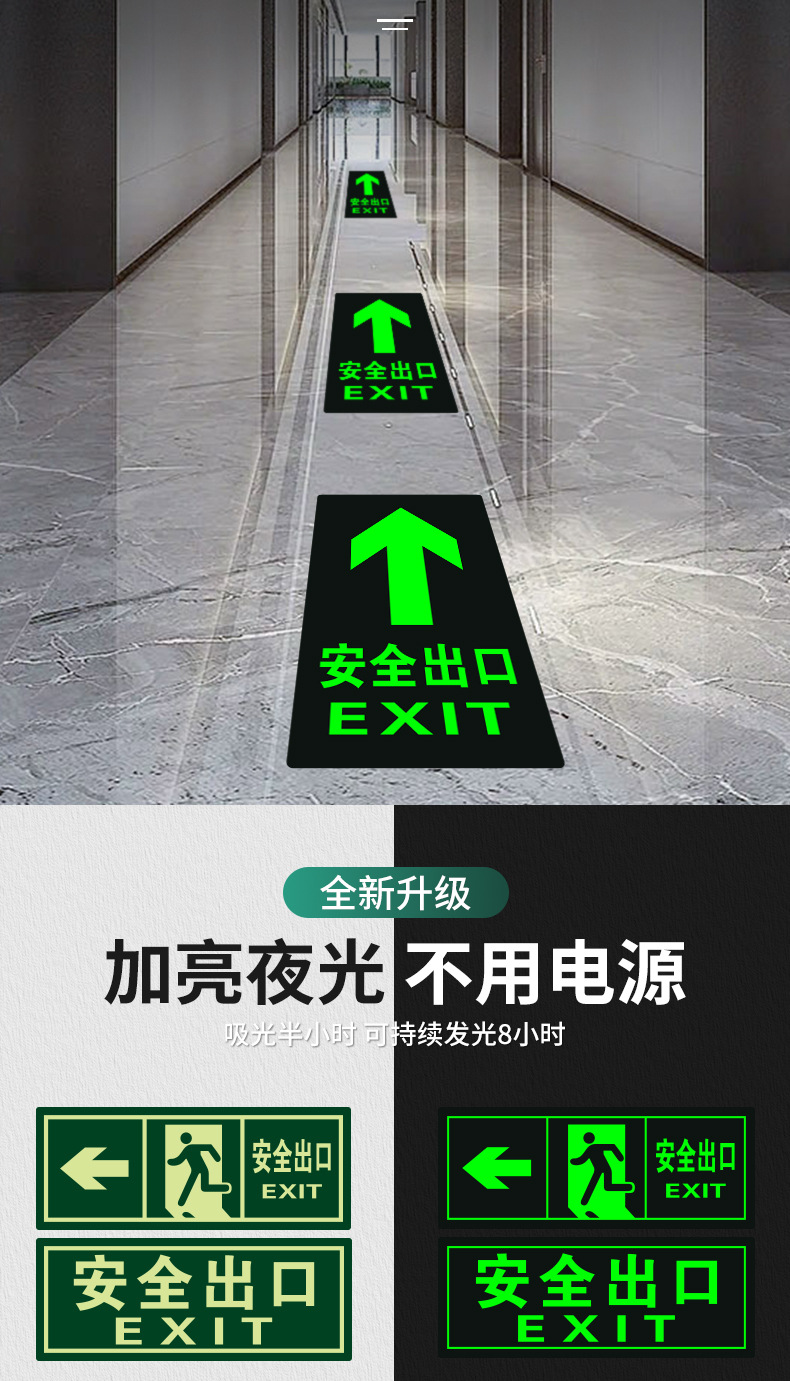 • [바닥 스티커] 매우 밝은 안전 출구 직진