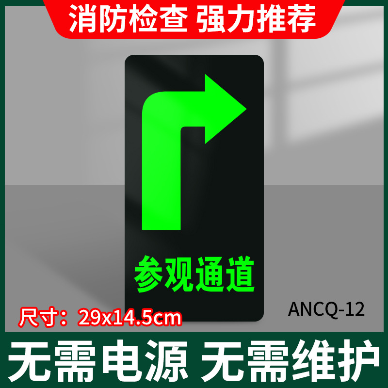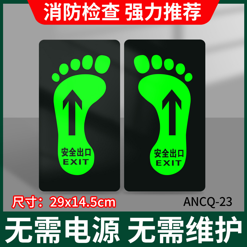 화재 안전 출구 표지판 자체 발광 pvc 발 화살표 내마모성 벽 스티커 비상 탈출 채널스토어 가기