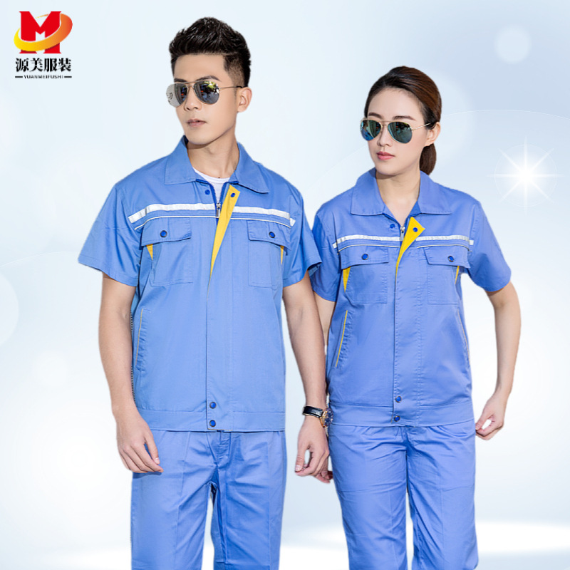 여름 작업복 세트 남성용 얇은 짧은 소매 통기성 노동 보호 의류 반 소매 기계 및 전기 공장 노동자 툴링 맞춤형스토어 가기