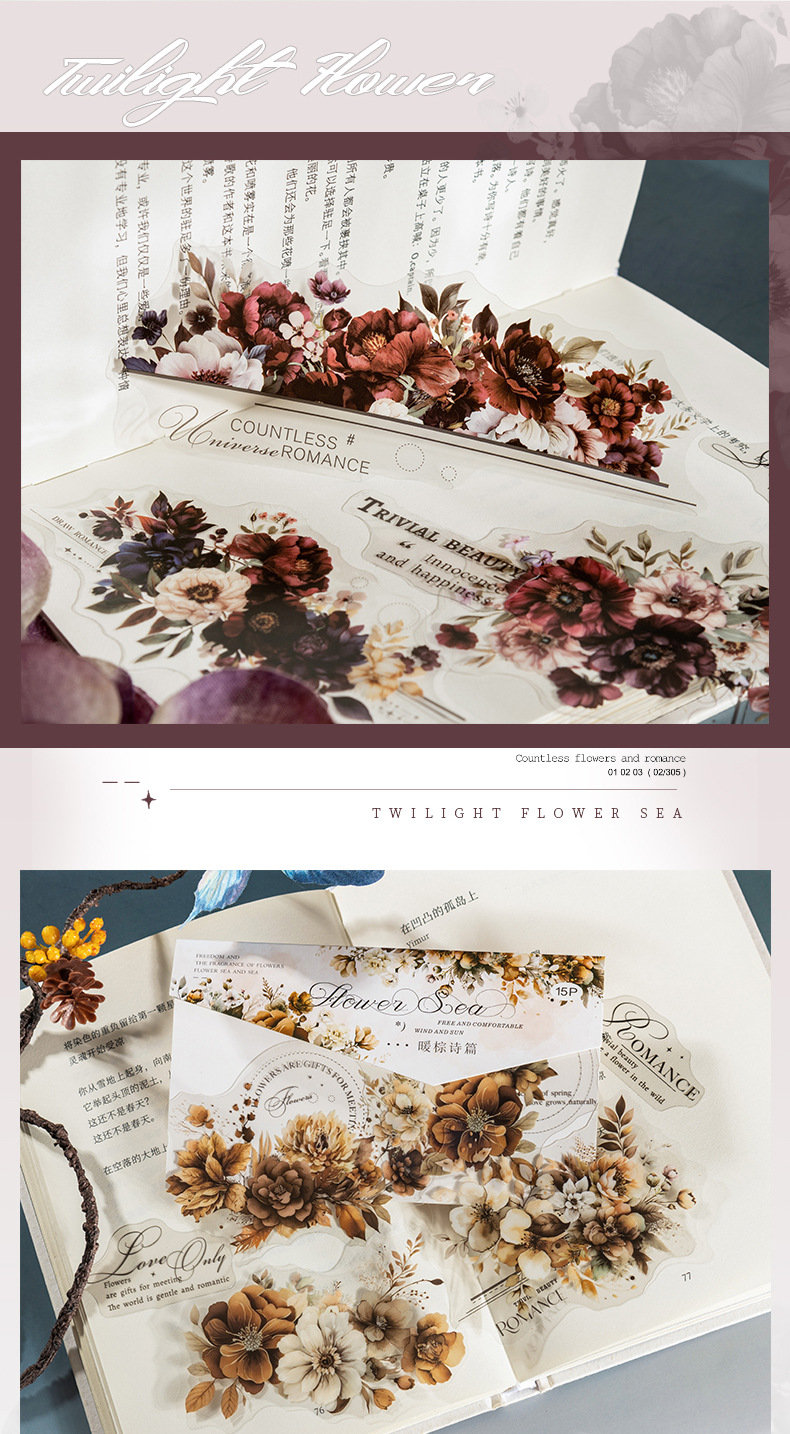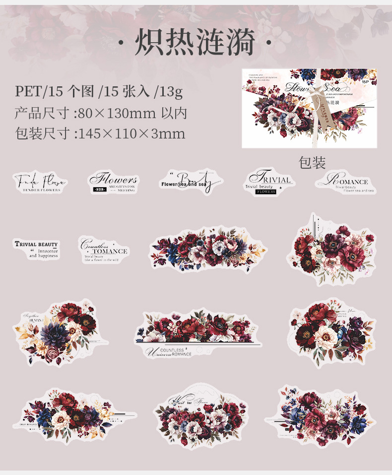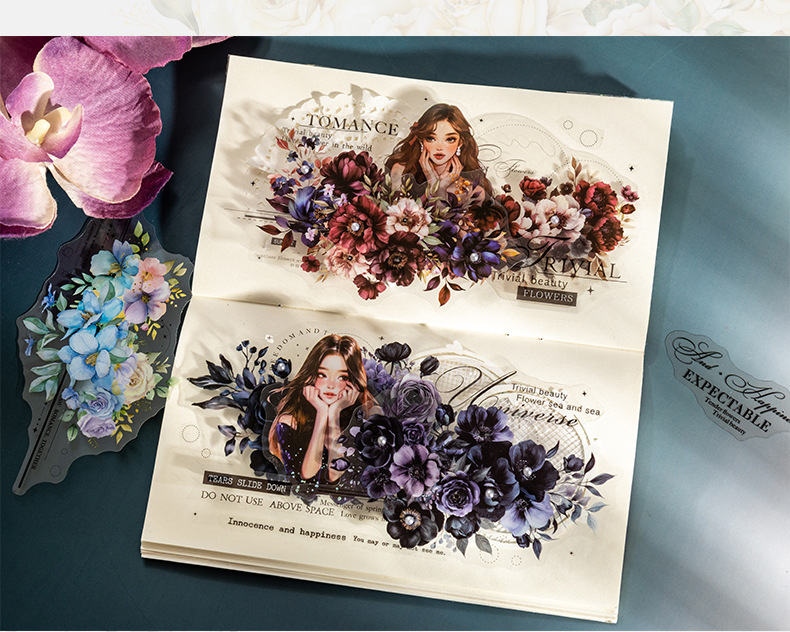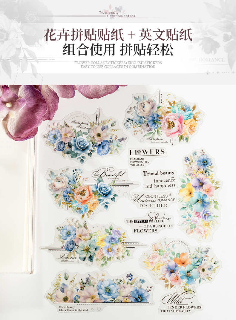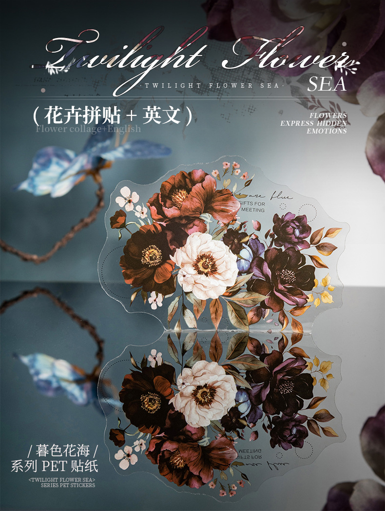 케첩 소녀 황혼의 꽃 바다 시리즈 꽃 영어 콜라주 애완 동물 스티커 손 계정 콜라주 장식 자료 6