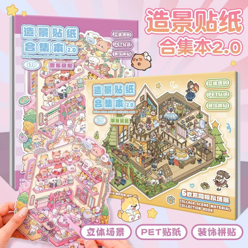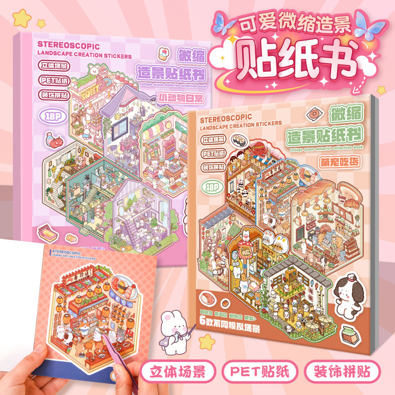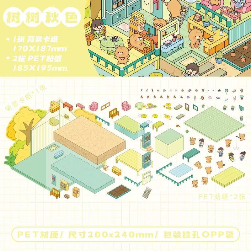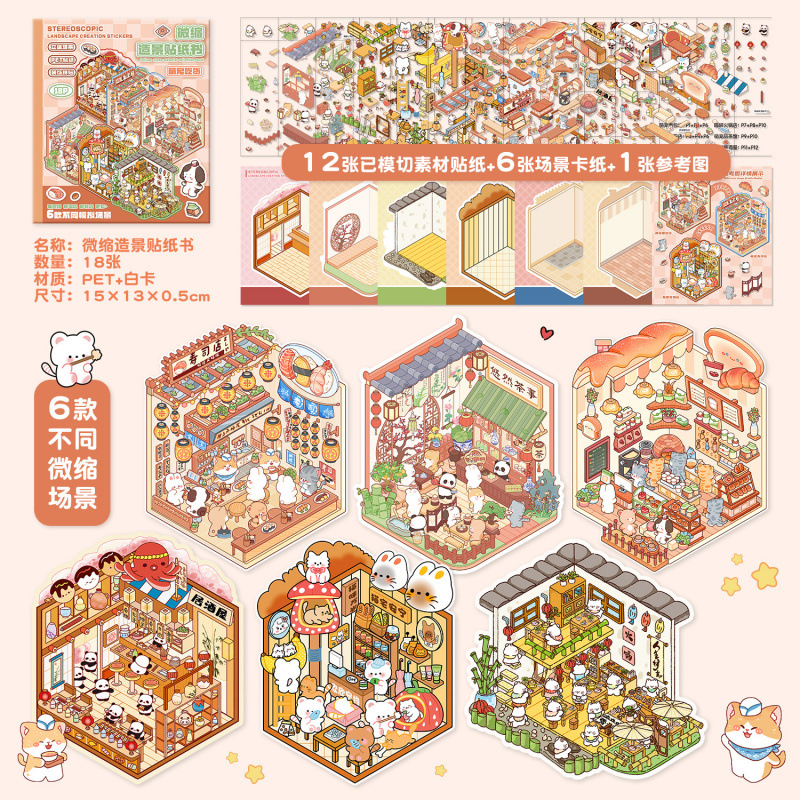 Tirado 미니어처 장면 컬렉션 조경 스티커 3 차원 오두막 소녀 어린이 장난감 diy 핸드북 스티커스토어 가기