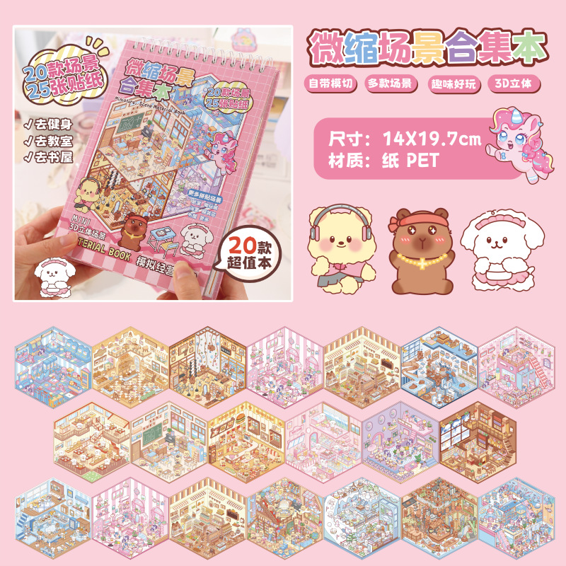 • 미니어처 장면 모음집 [20 장면 + 스티커 25개]