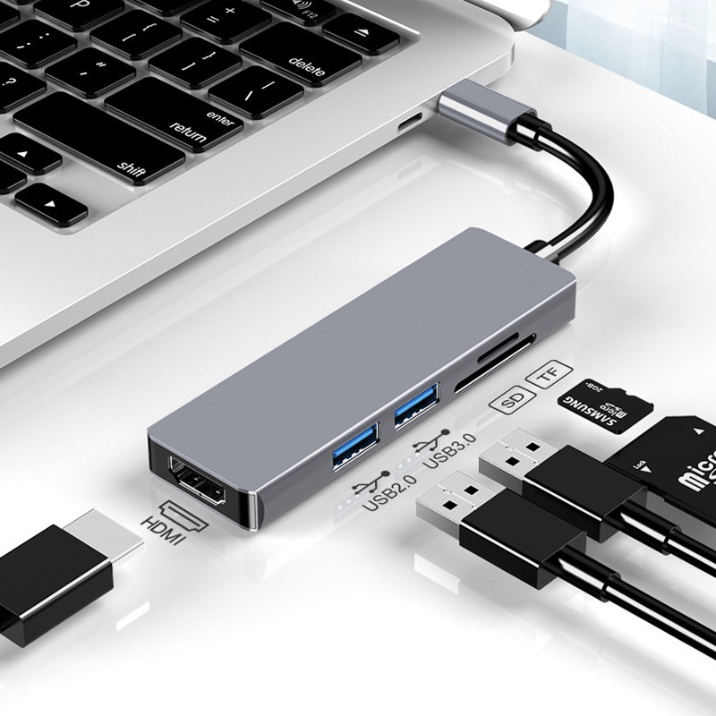 • 6-in-1 HDMI4k+USB3.0+USB2.0+PD100W+SD/TF