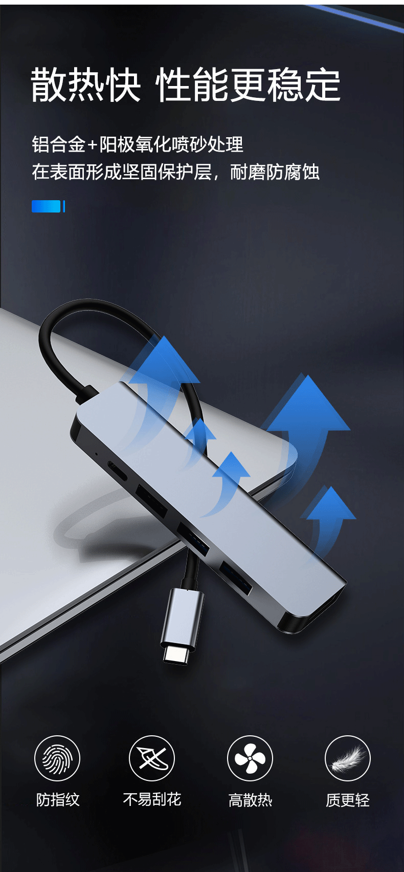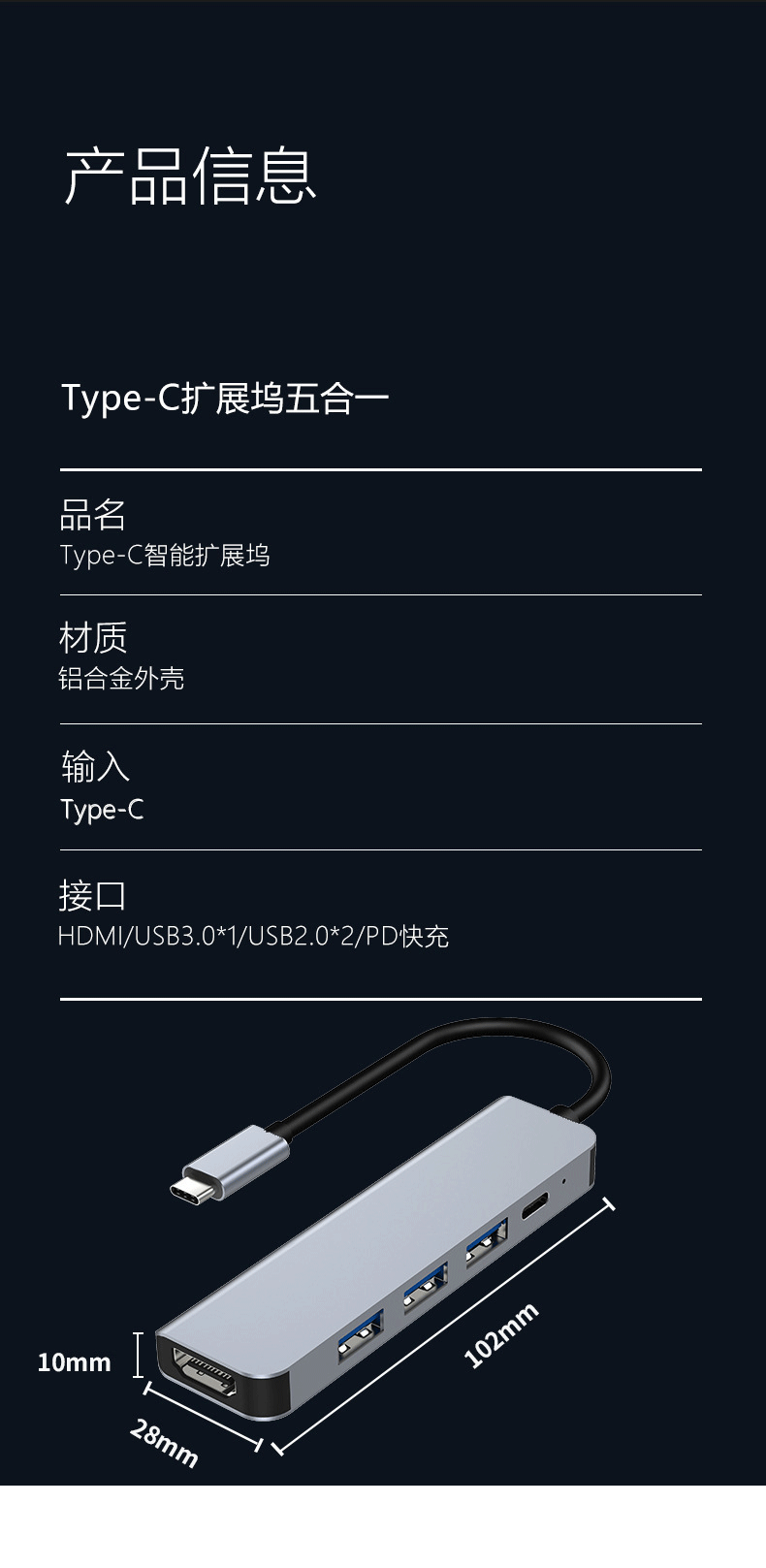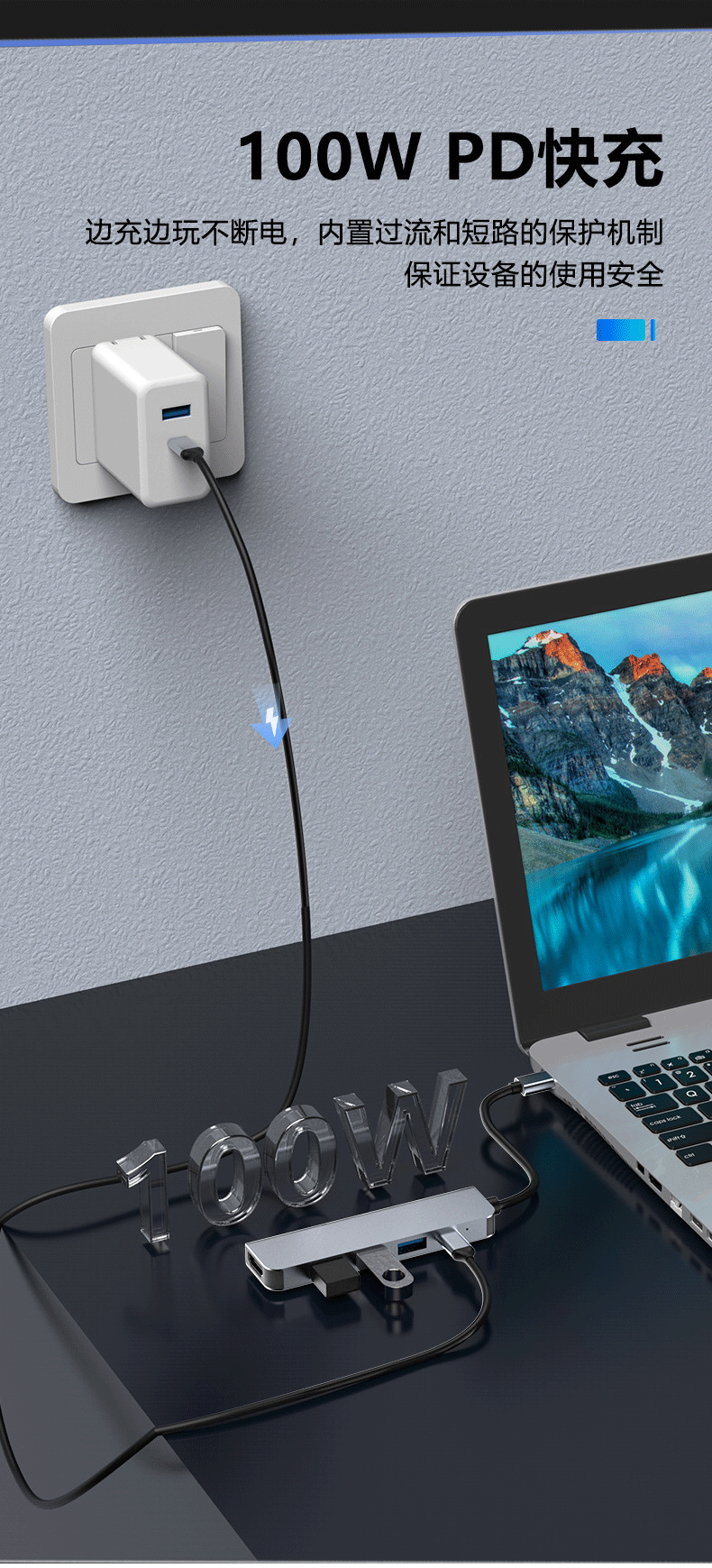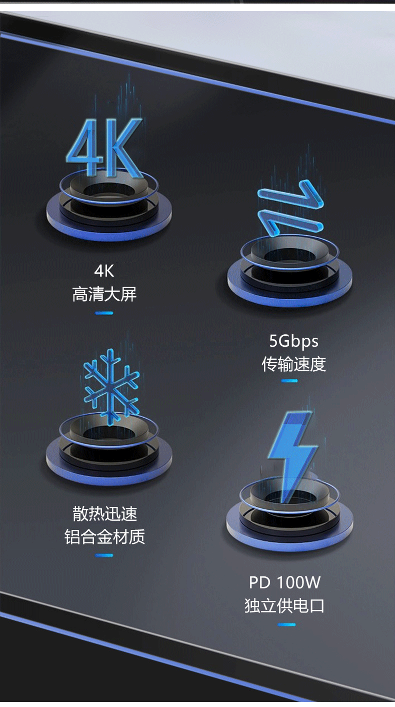 • 5-in-1 HDMI4k+USB3.0+USB2.0*2+PD100W