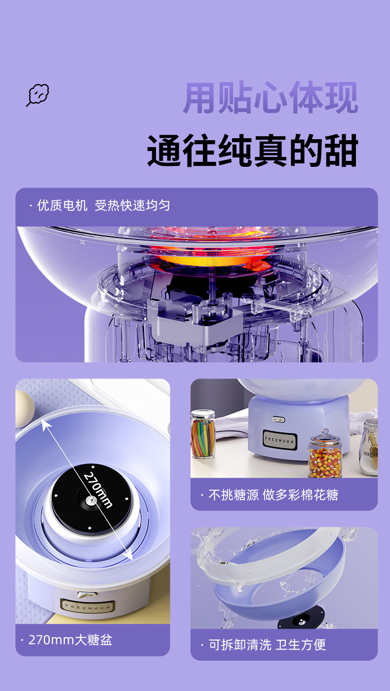 FREEMAKH 마시멜로 기계 어린이 가정 활동 수제 작은 완전 자동 상업용 마시멜로 기계스토어 가기