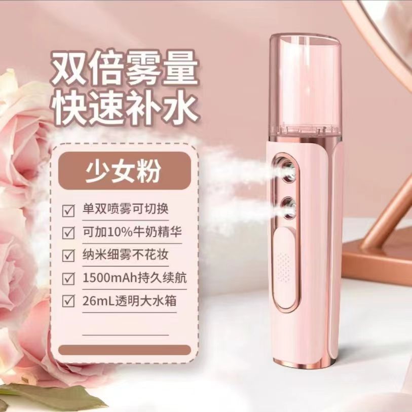 이중 구멍 수분 공급 장치 나노 스프레이 어 휴대용 충전식 수분 공급 스프레이 어 콜드 스프레이 얼굴 미용 산소 주입 및 보습