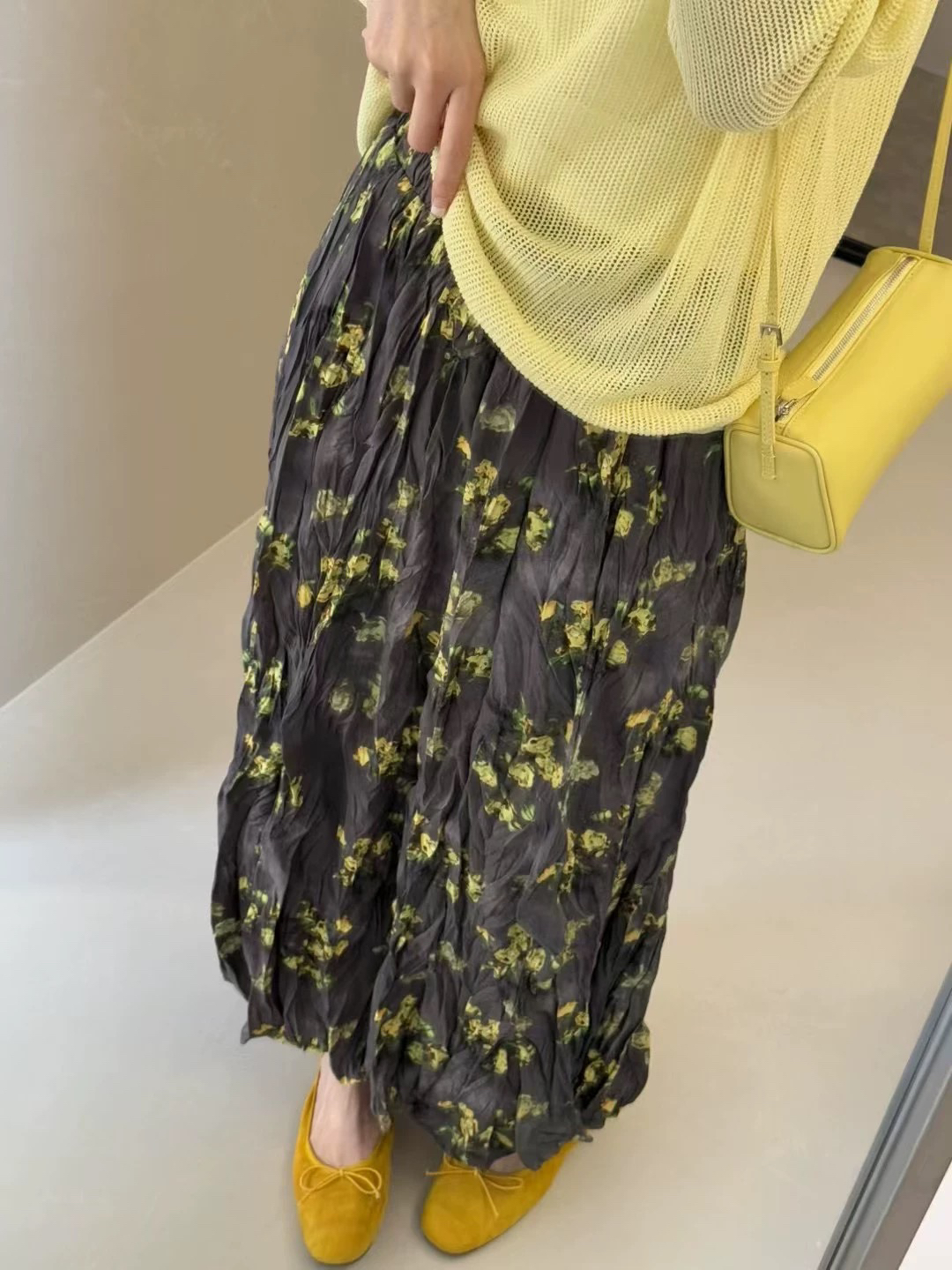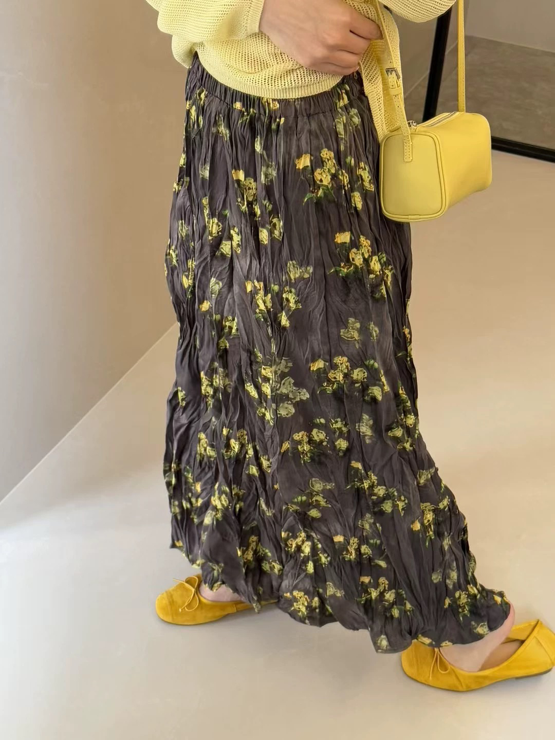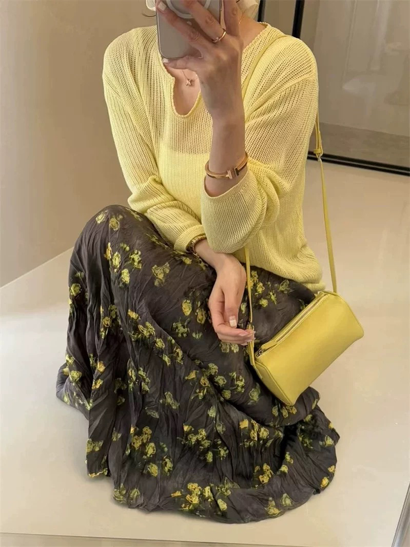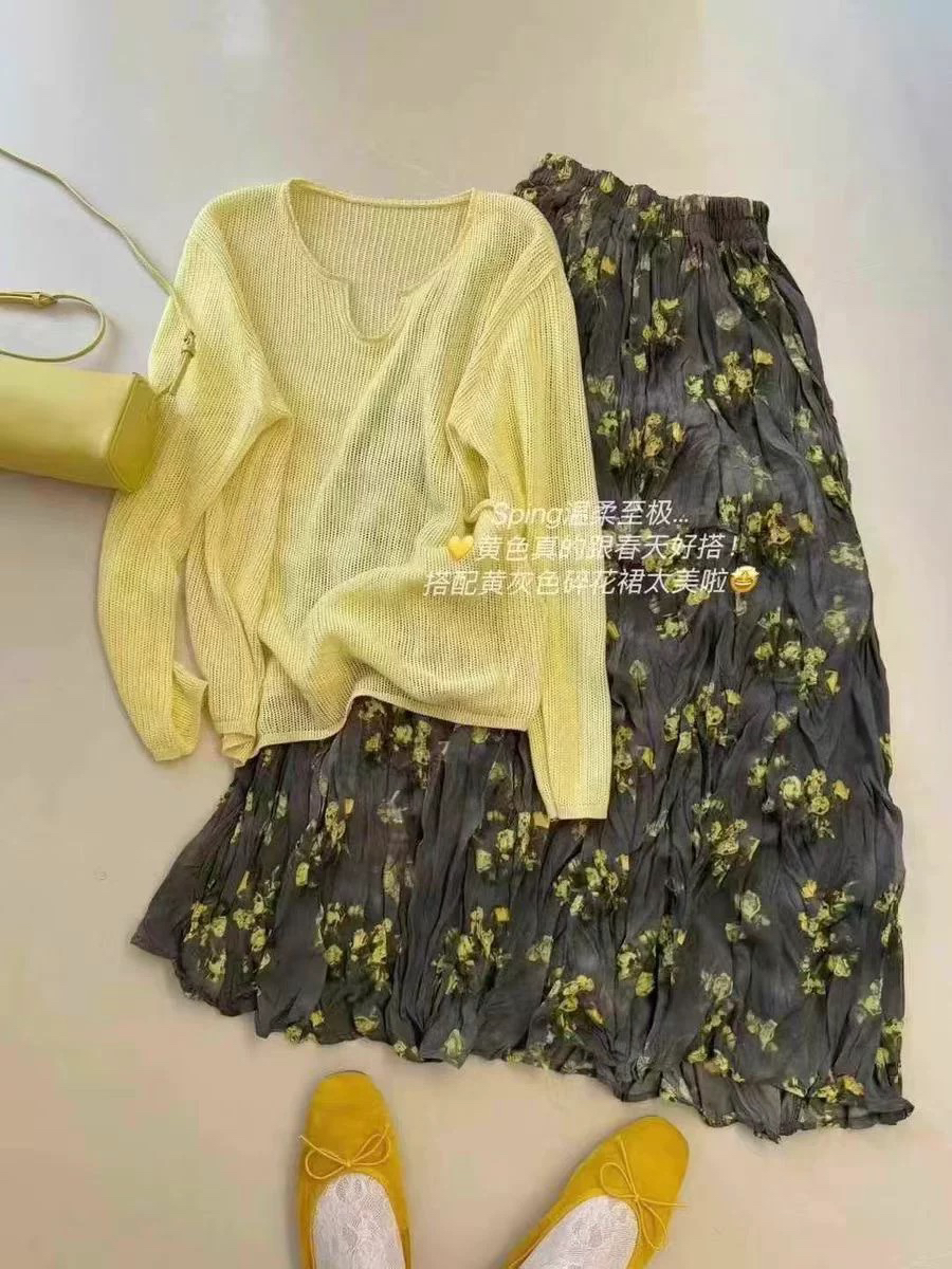 프랑스 스타일 빈티지 꽃 스커트 여성의 봄과 여름 중간 길이의 엘라 스토 허리 슬리밍 대형 스윙 주름 A-라인 스커트