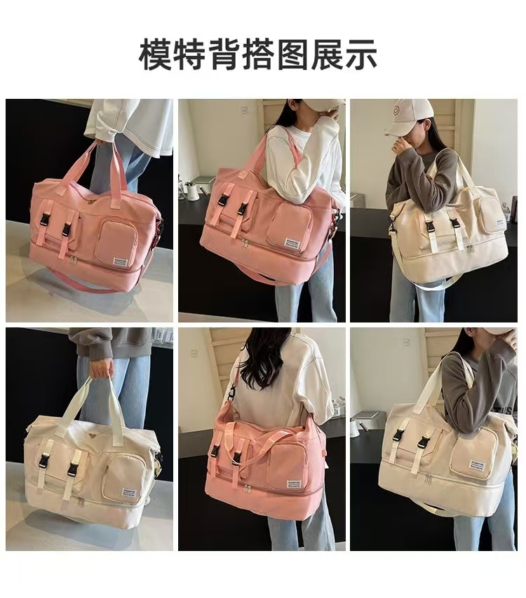 여행 가방 다기능 휴대용 스포츠 피트니스 가방 수납 가방 건식 및 습식 분리 여성용 대형 가방 가볍고 통기성이 좋음스토어 가기