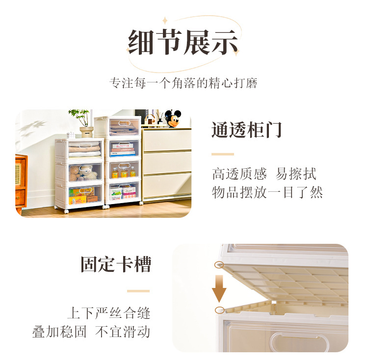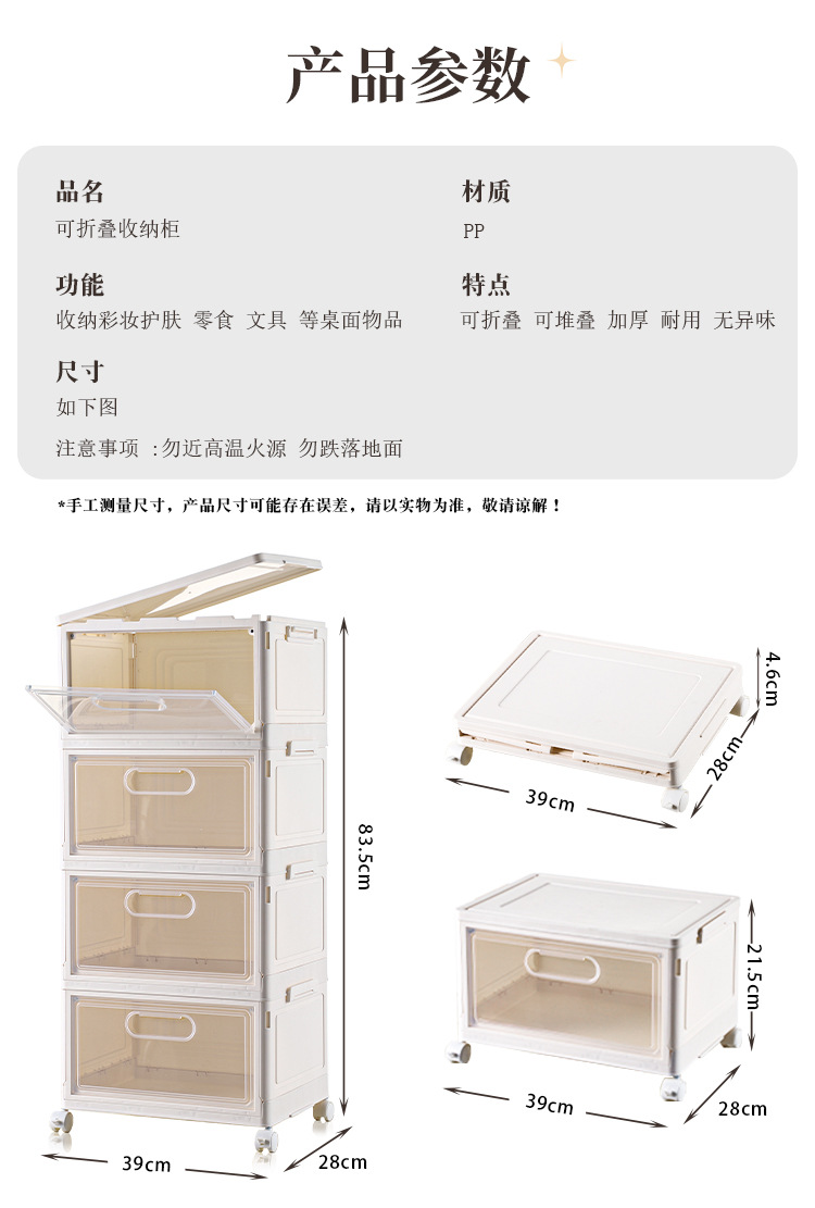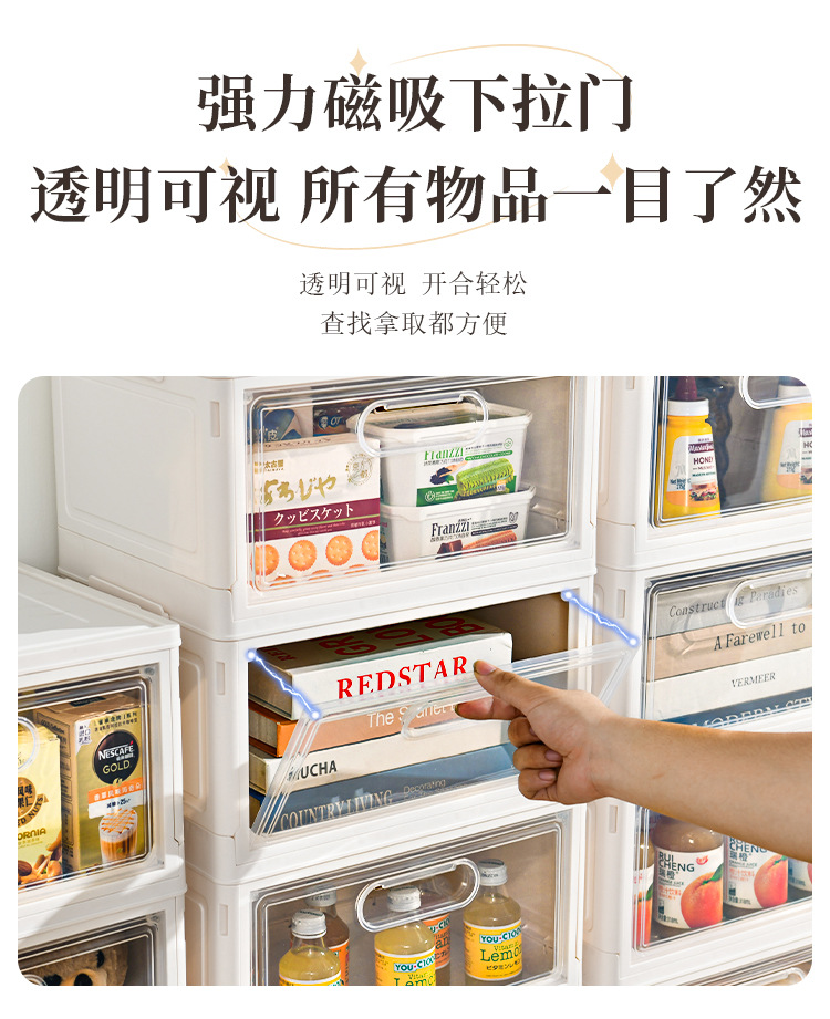 크림 스타일 접이식 보관 상자 설치가 필요없는 의류 장난감 스낵 보관 캐비닛 가정용 보관 정리 캐비닛 공장스토어 가기
