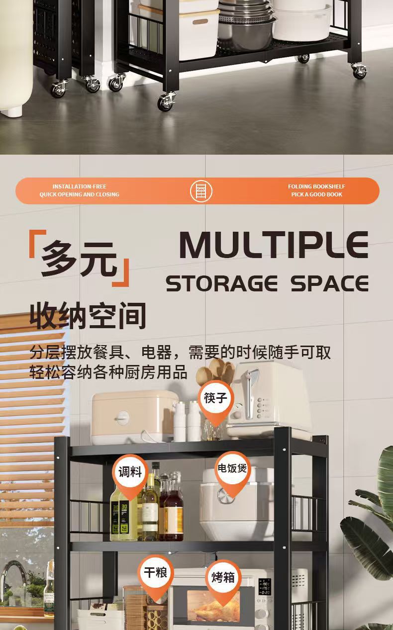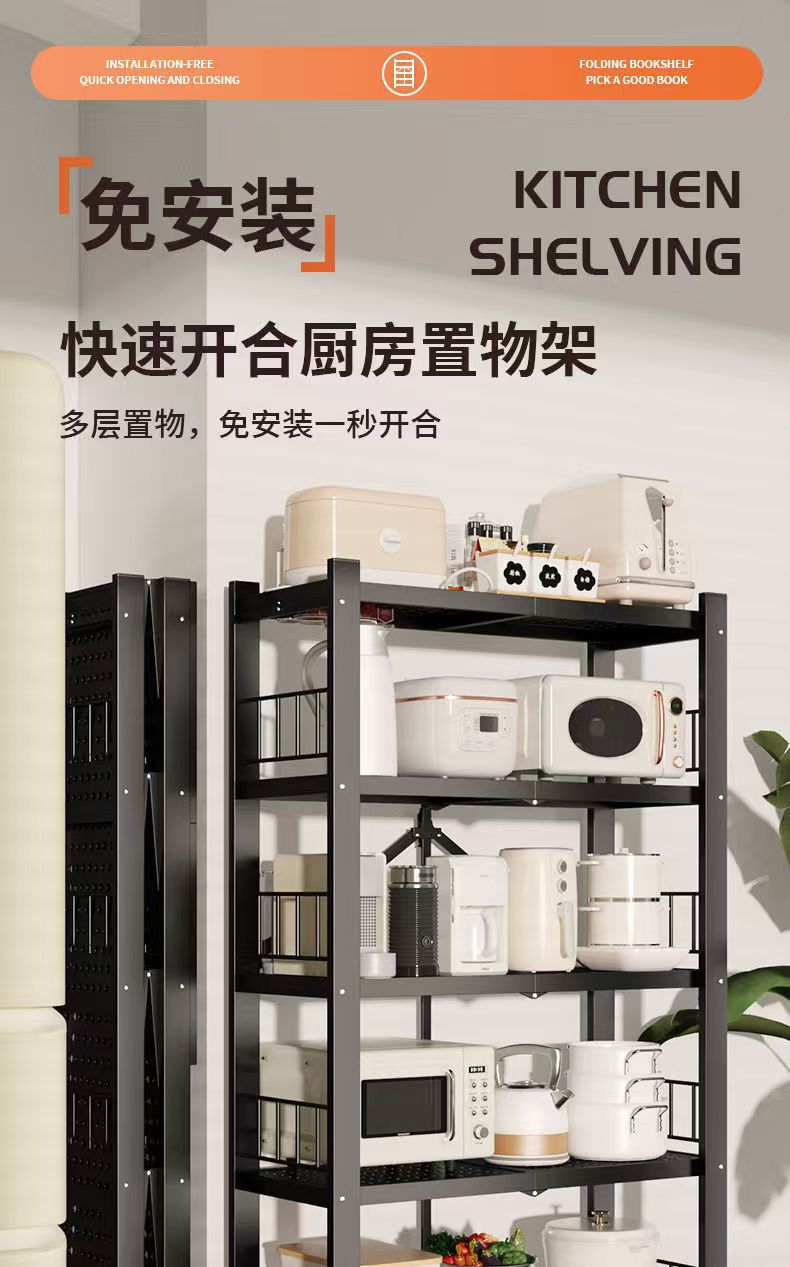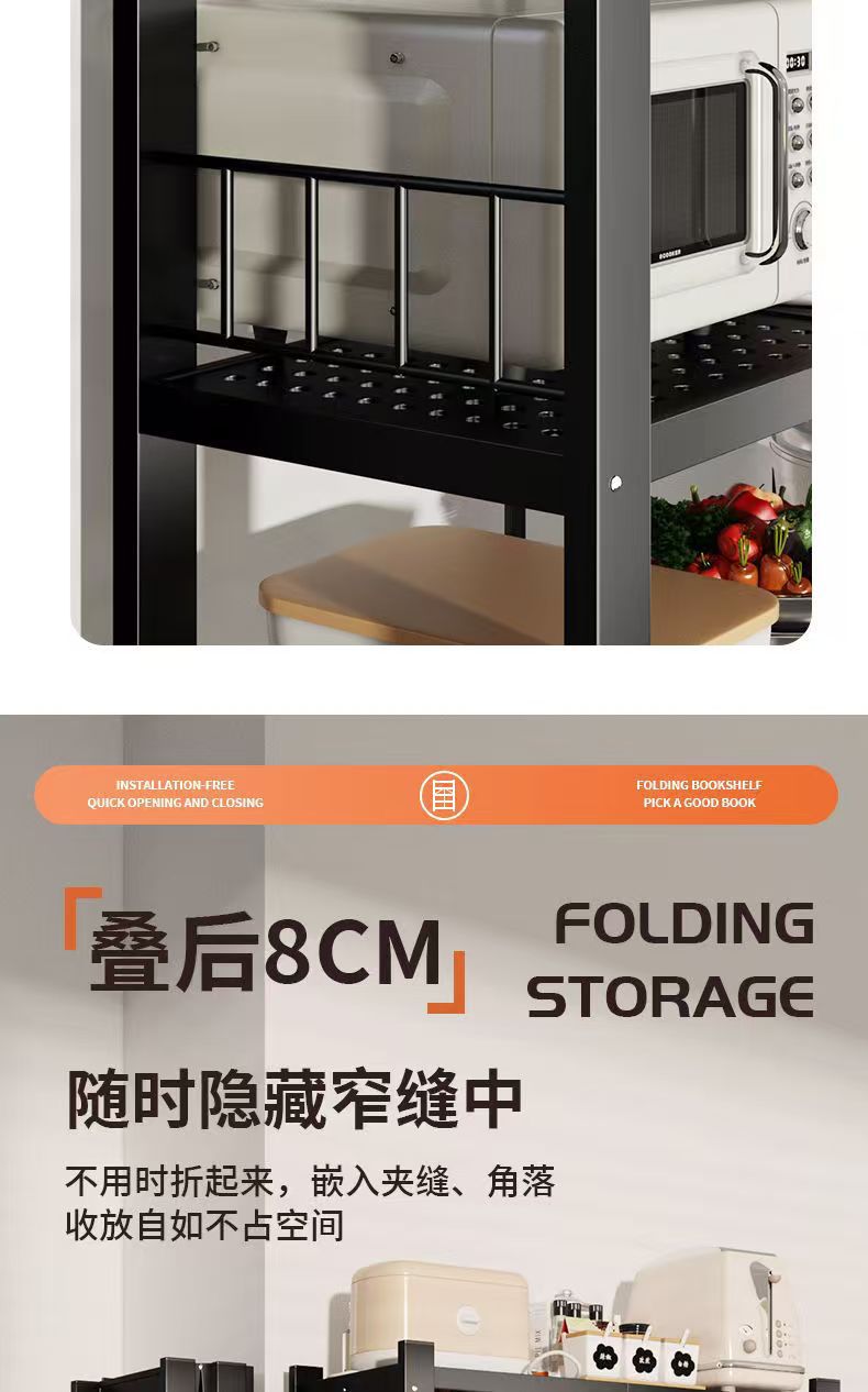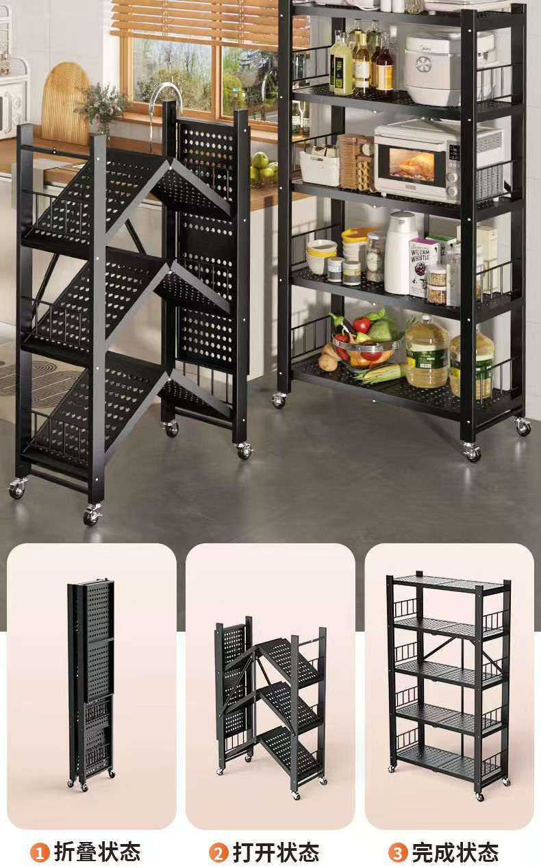 가정용 설치-무료 접이식 다층 스토리지 랙 스낵 바닥-주방 및 발코니 용 전자 레인지 이동식 스토리지 랙