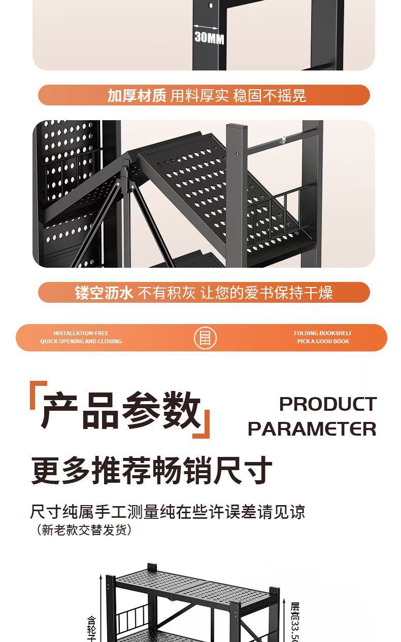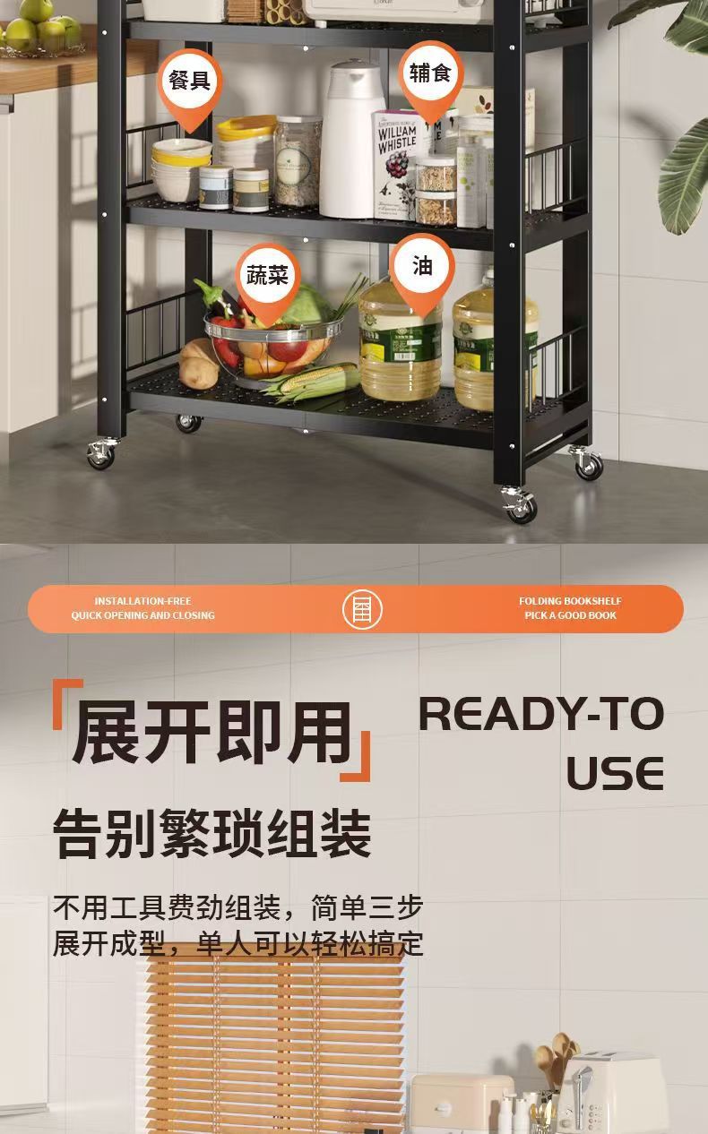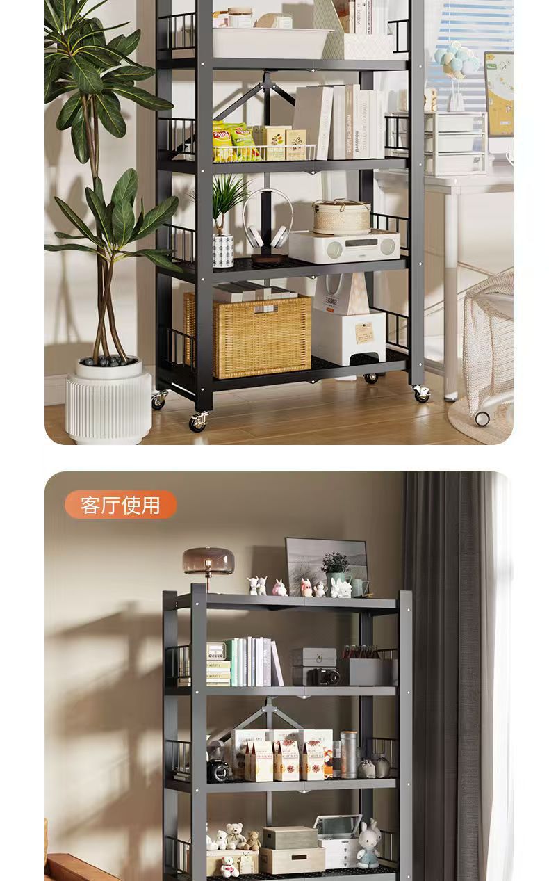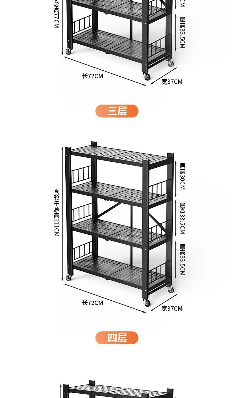 가정용 설치-무료 접이식 다층 스토리지 랙 스낵 바닥-주방 및 발코니 용 전자 레인지 이동식 스토리지 랙