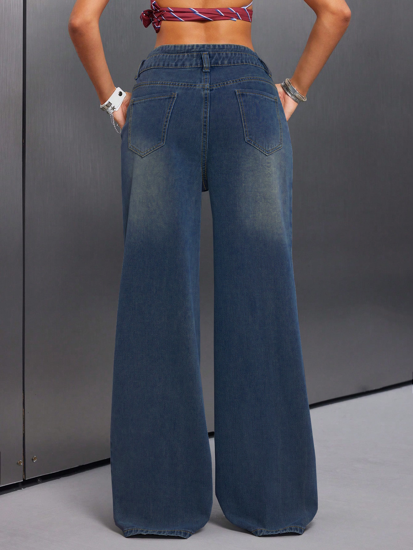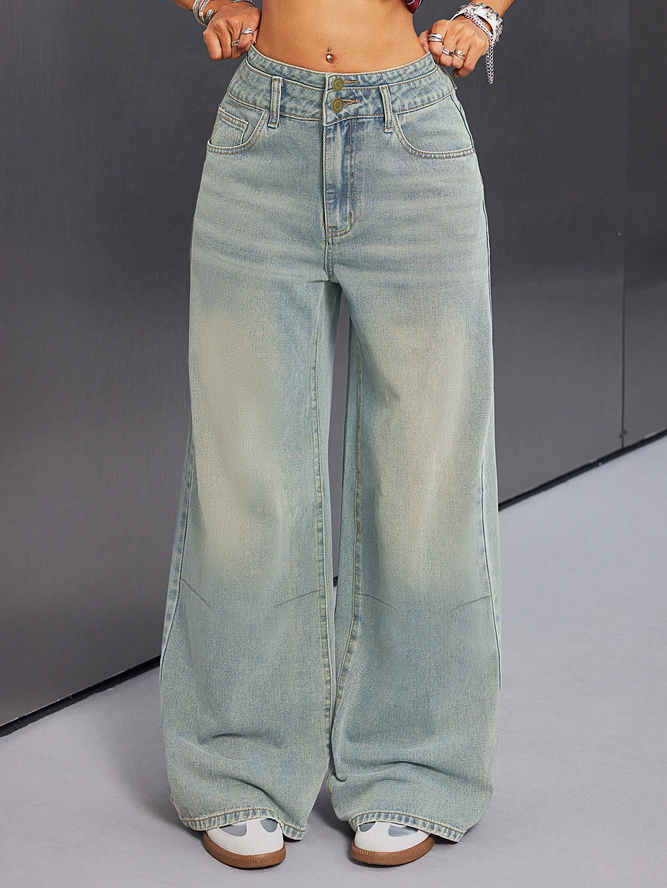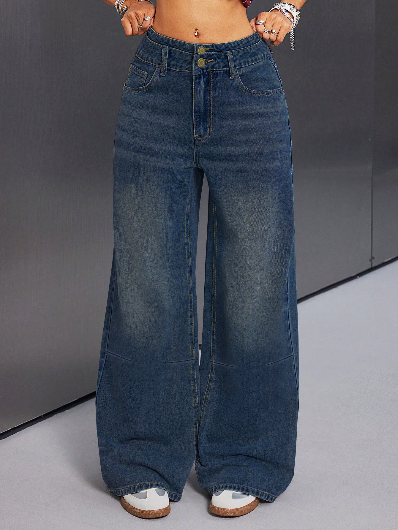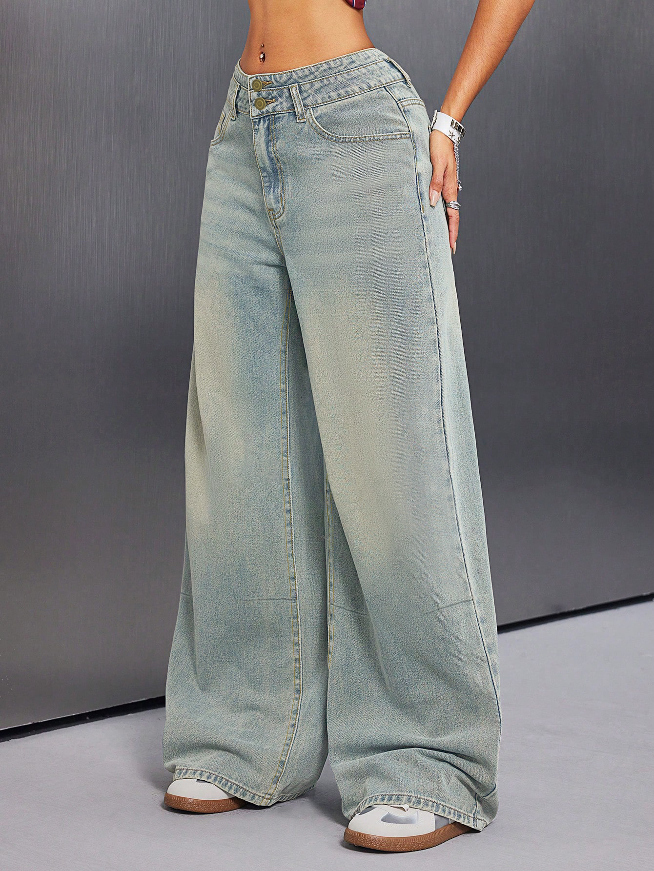 국경 간 대외 무역 아마존 유럽과 미국 스타일의 브레스트 디자인 복고풍 청바지 여성의 느슨한 스트레이트 와이드 다리 바닥 바지