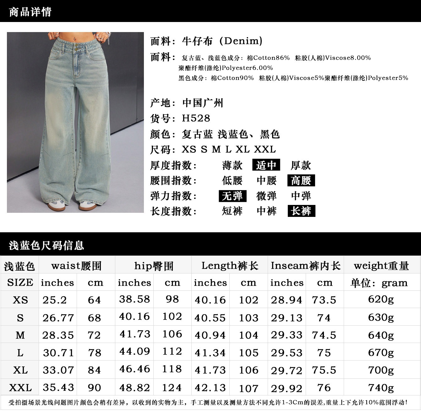 국경 간 대외 무역 아마존 유럽과 미국 스타일의 브레스트 디자인 복고풍 청바지 여성의 느슨한 스트레이트 와이드 다리 바닥 바지스토어 가기