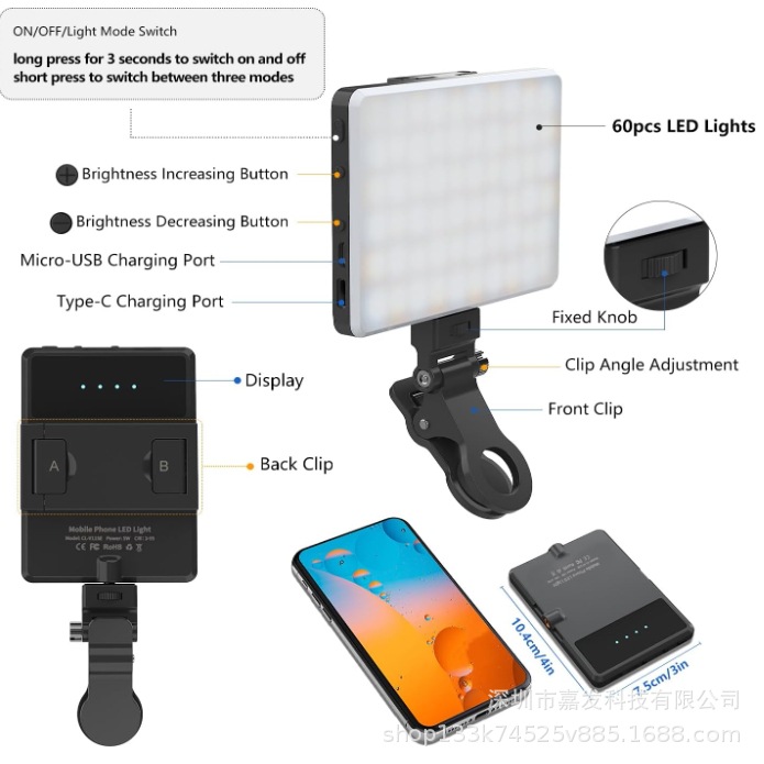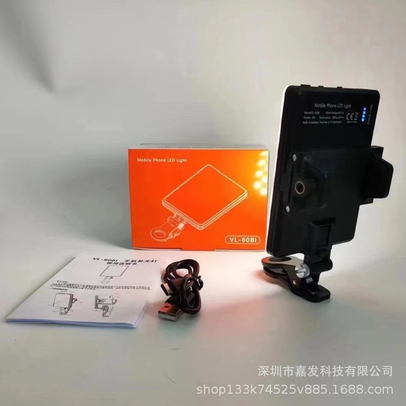 국경 간 VL-60B 포켓 라이트 휴대용 셀카 라이트 휴대 전화 노트북 라이브 사진 Vlog 플래시 뷰티 라이트스토어 가기