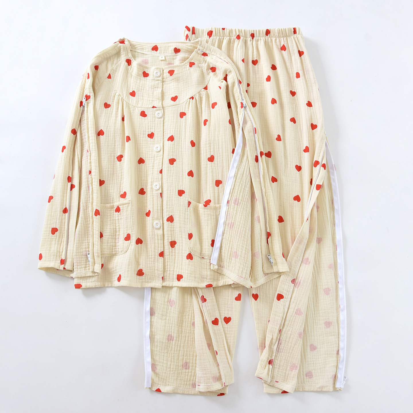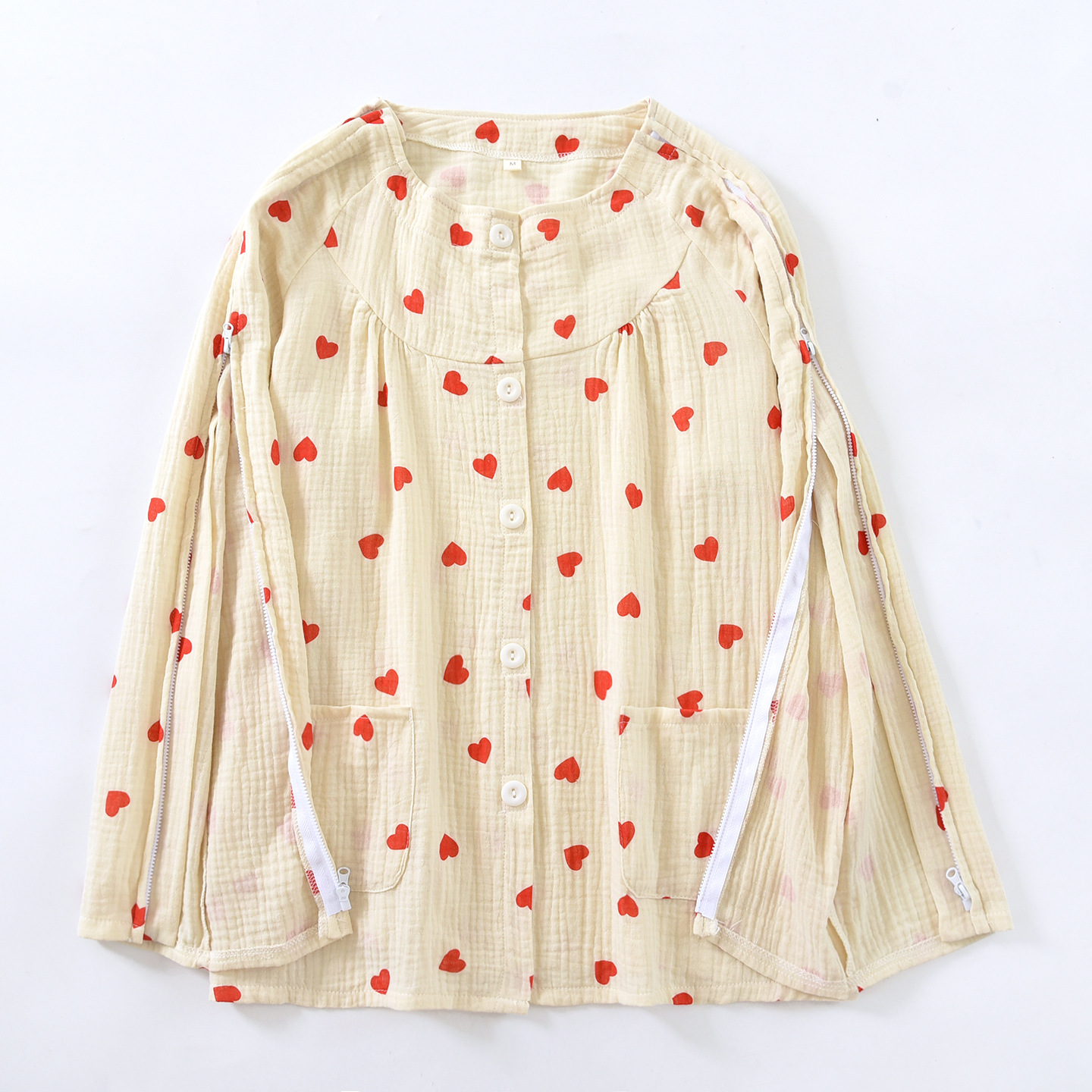 탈착이 용이한 여성용 단색 수술 후 골절 및 마비 침대 간호복 순면 얇은 통기성 투석 및 항암 재활복스토어 가기