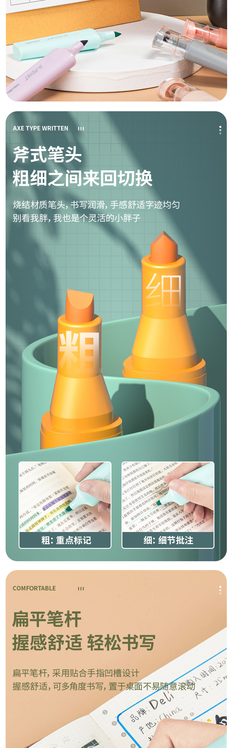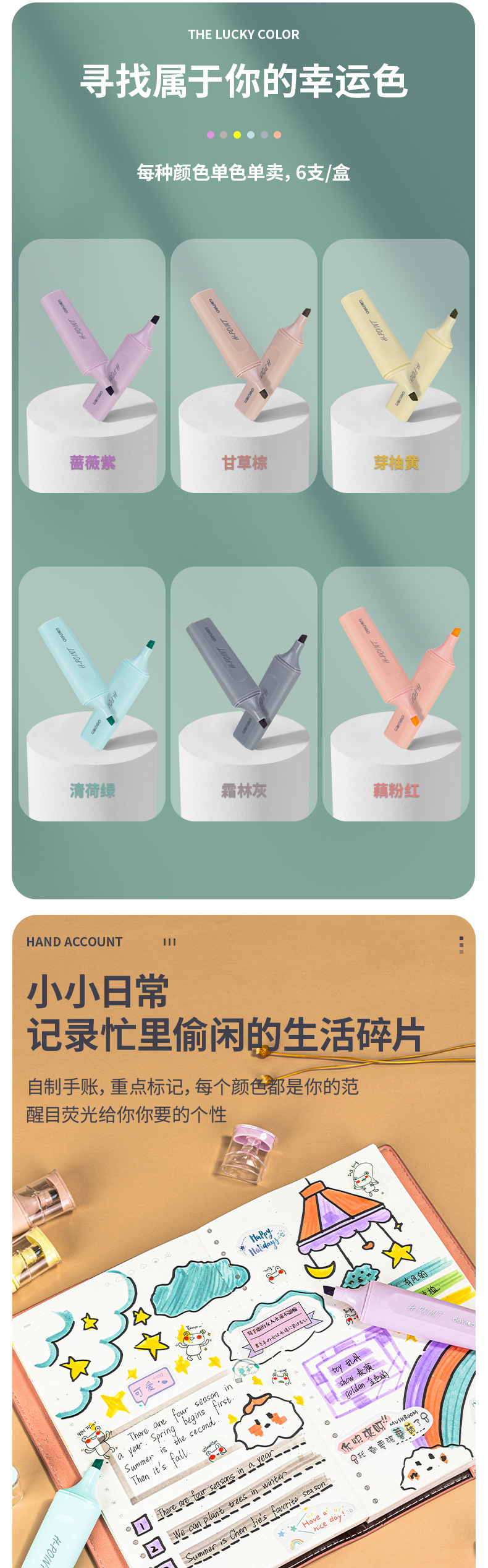 델리 S616 미스트 플랫 로드 소프트 컬러 6색 형광펜 학생 시험 키 마커 펜 핸드북 페인트