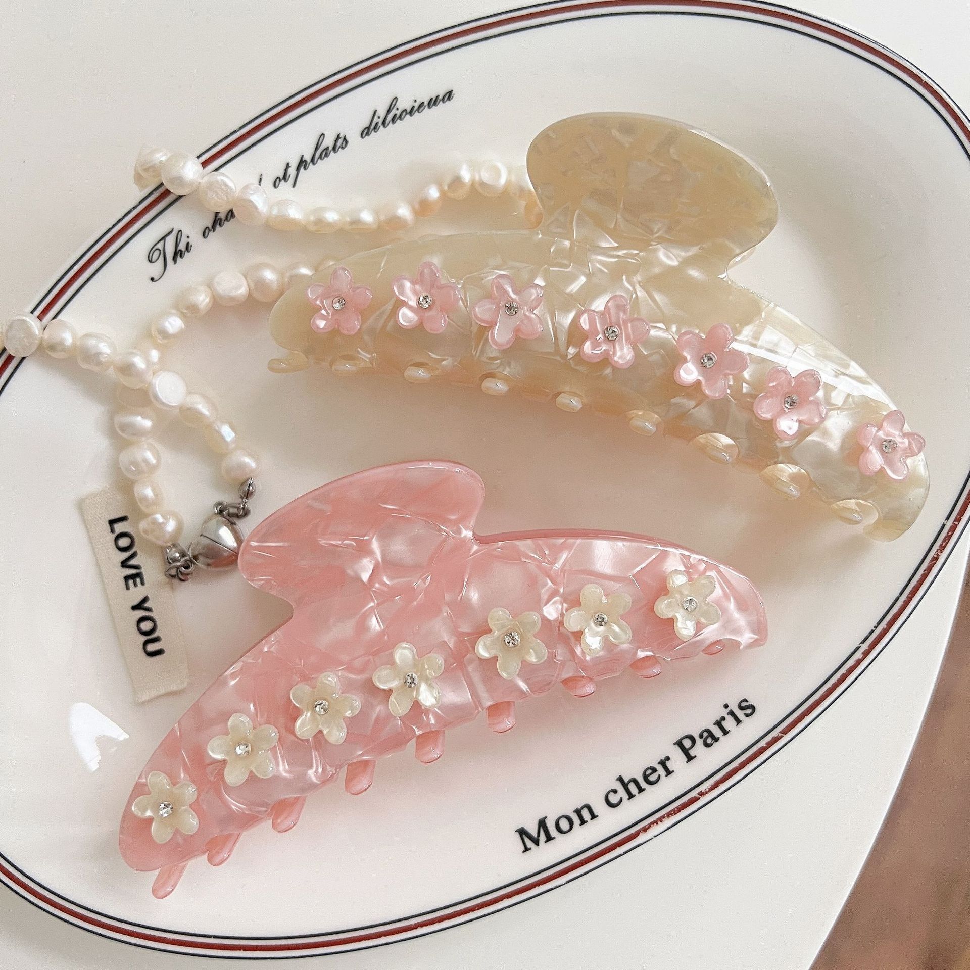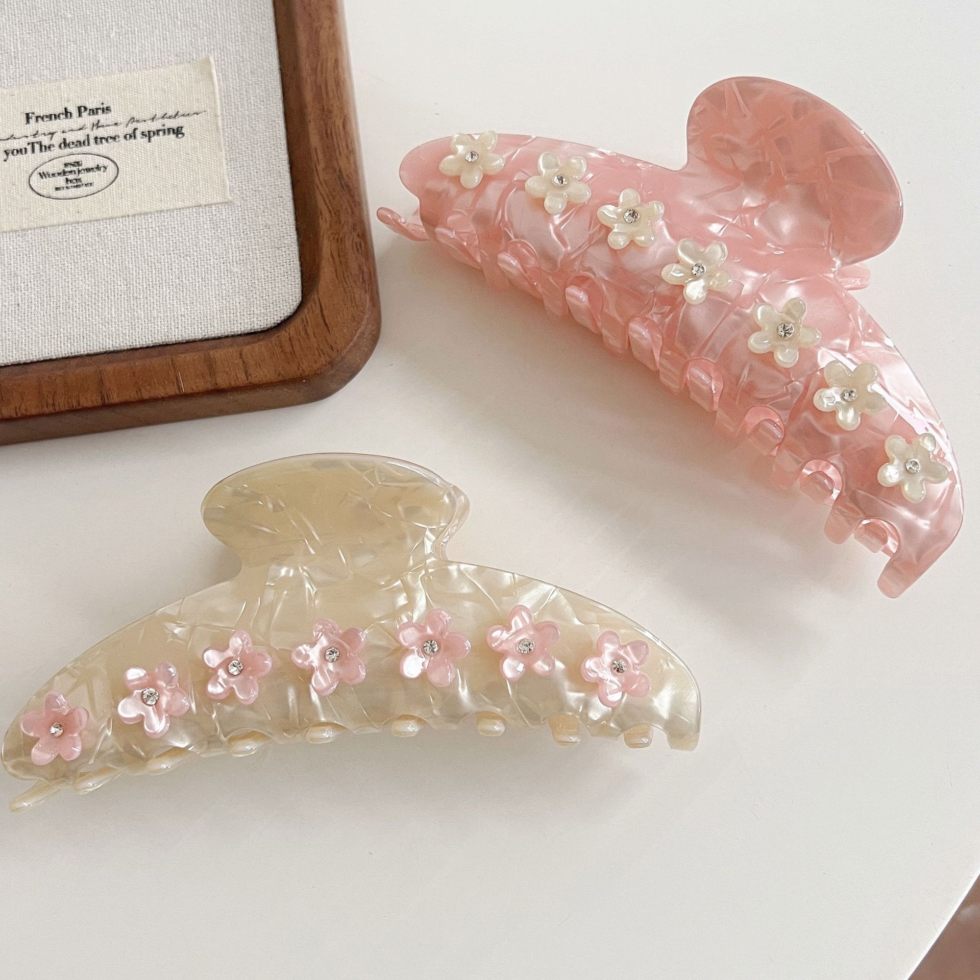 프랑스 벚꽃 헤어 클립 큰 아세트산 다이아몬드 상어 클립 머리 머리 클립 틈새 절묘한 헤어 클립스토어 가기