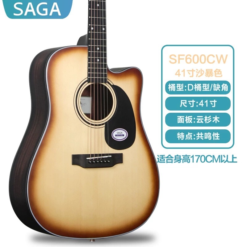 SAGAsf600 SAGA 정품 초보자 보급형 포크 남성 및 여성 어쿠스틱 일렉트릭 박스 기타