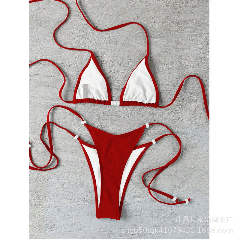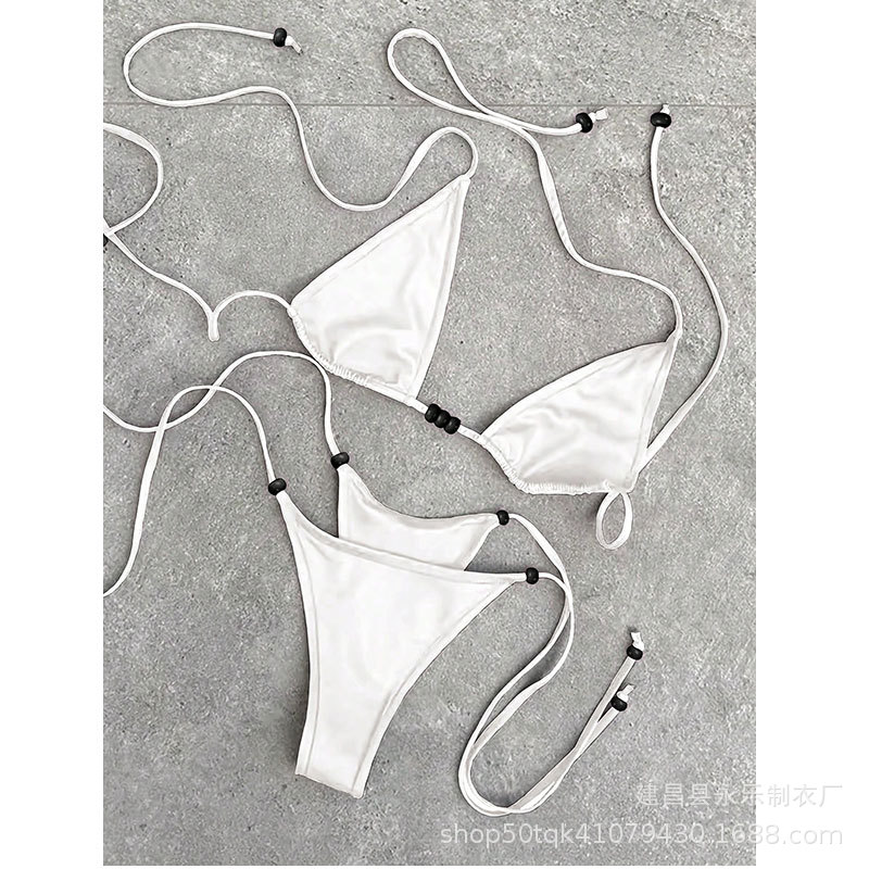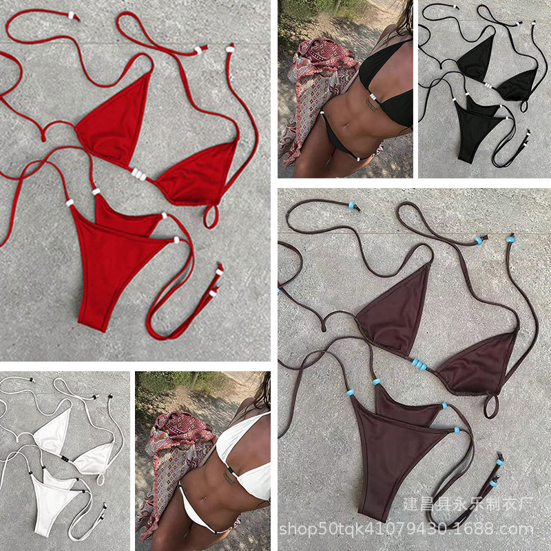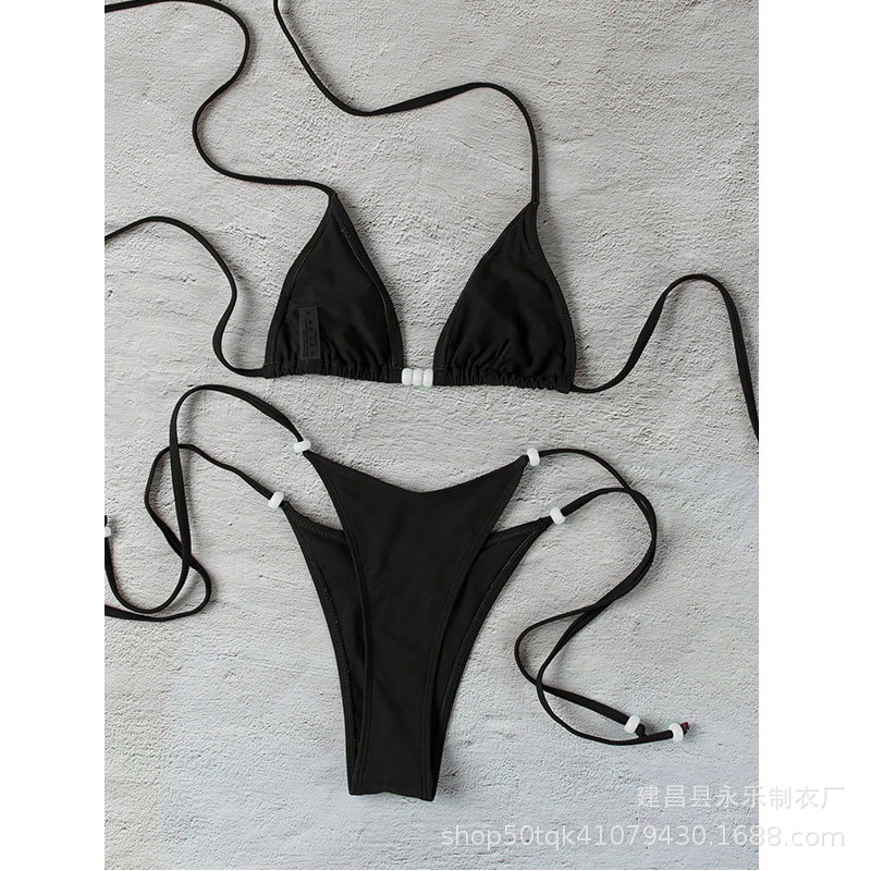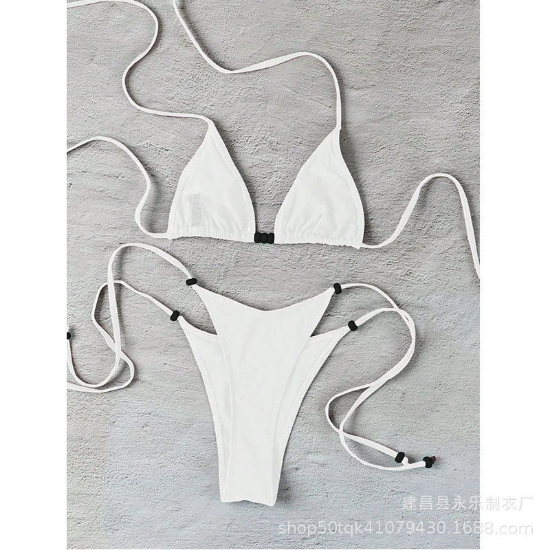 2025 새로운 크로스보더 솔리드 컬러 심플 유럽과 미국 여성 스플릿 수영복 트라이앵글 백 레이스 업 섹시한 비키니스토어 가기