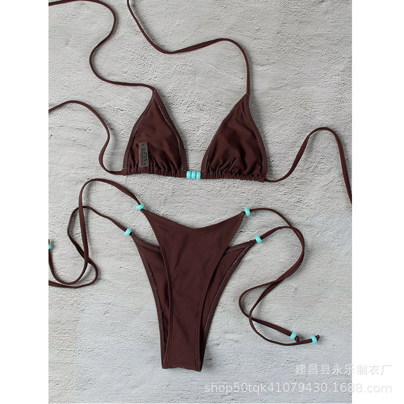 2025 새로운 크로스보더 솔리드 컬러 심플 유럽과 미국 여성 스플릿 수영복 트라이앵글 백 레이스 업 섹시한 비키니