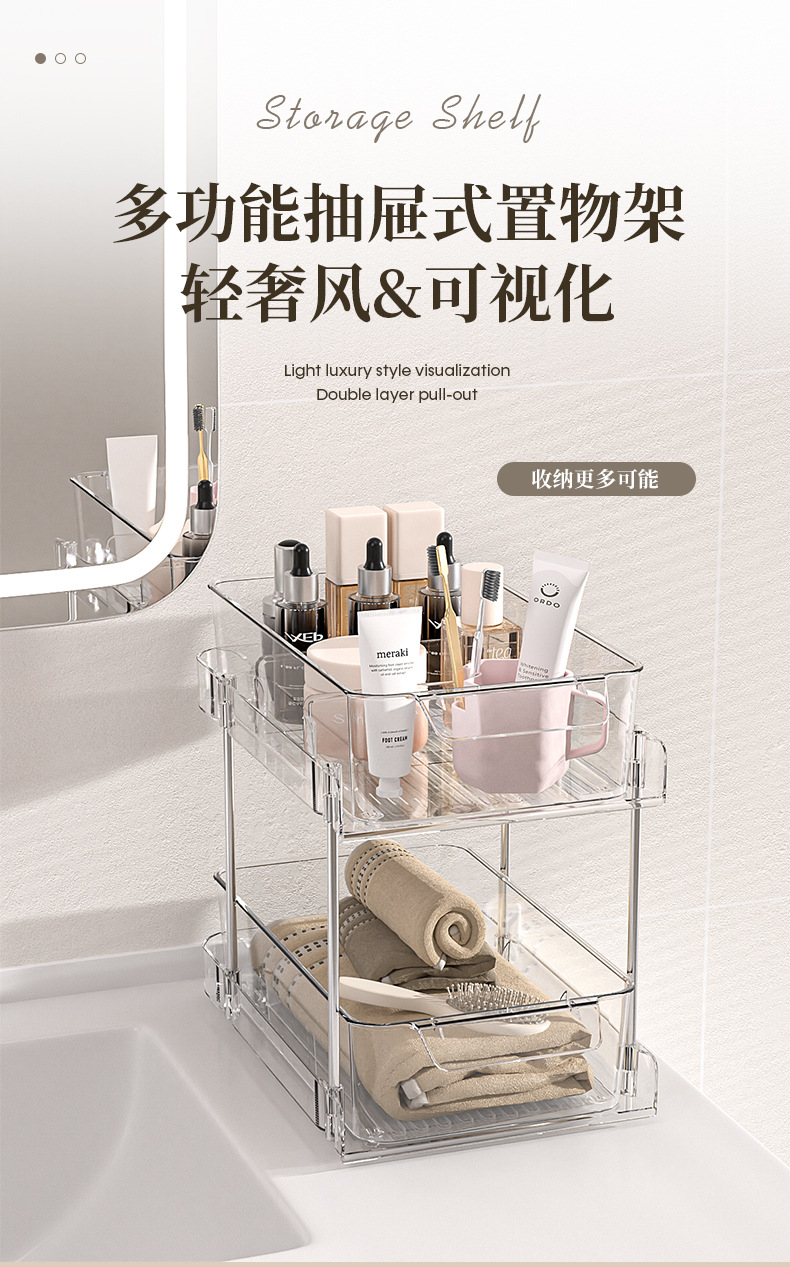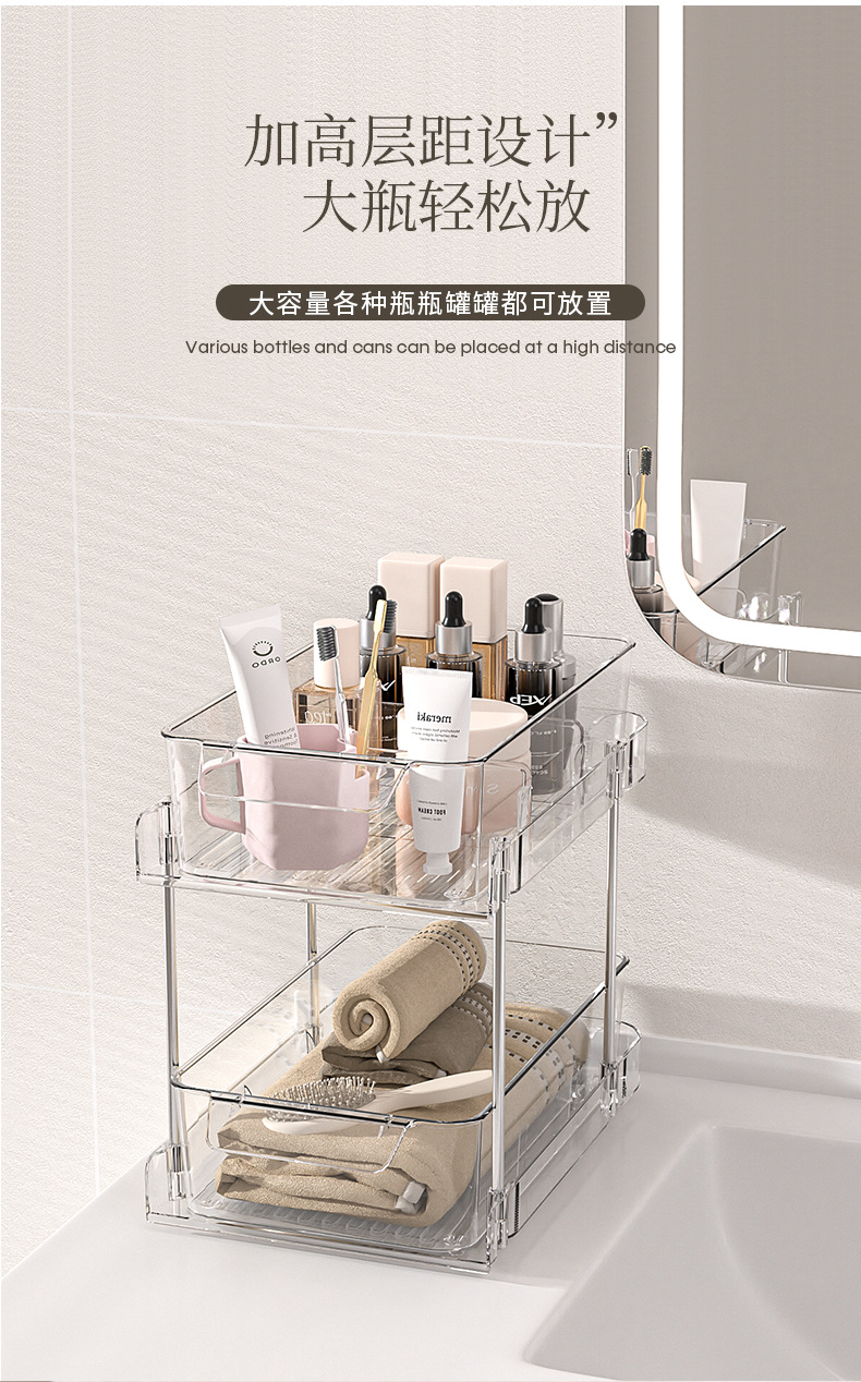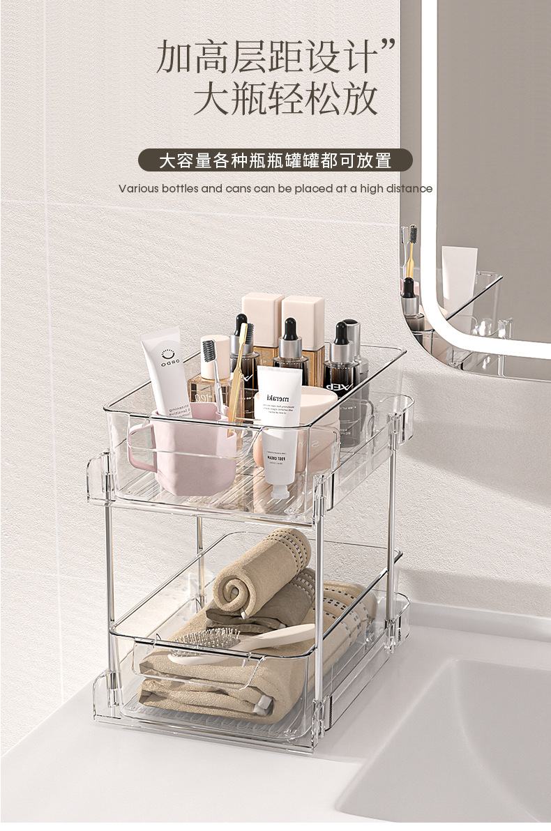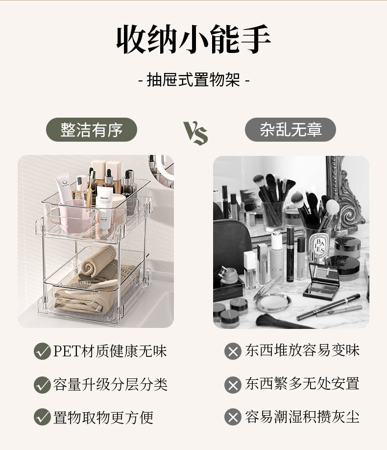 데스크탑 드레싱 테이블 화장품 보관함 욕실 화장실 조리대 풀아웃 보관함 투명 이중층 보관함스토어 가기