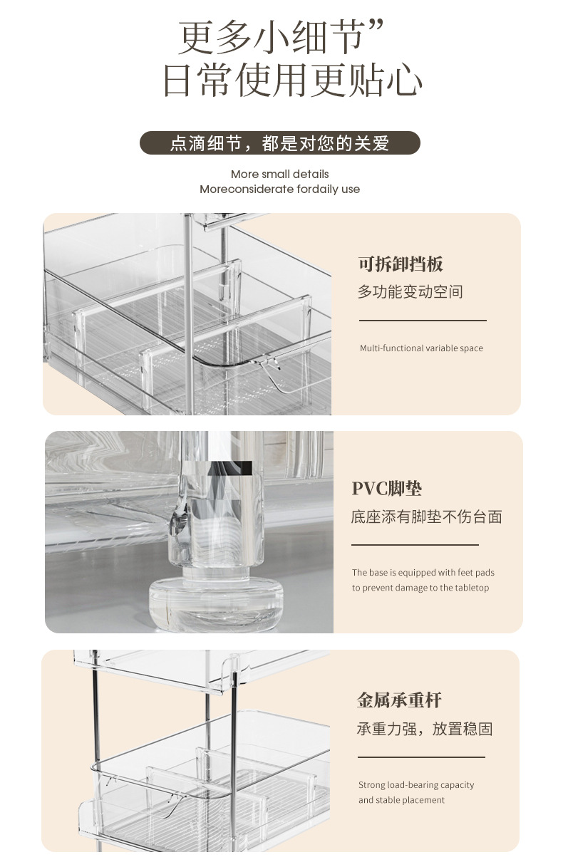 데스크탑 드레싱 테이블 화장품 보관함 욕실 화장실 조리대 풀아웃 보관함 투명 이중층 보관함