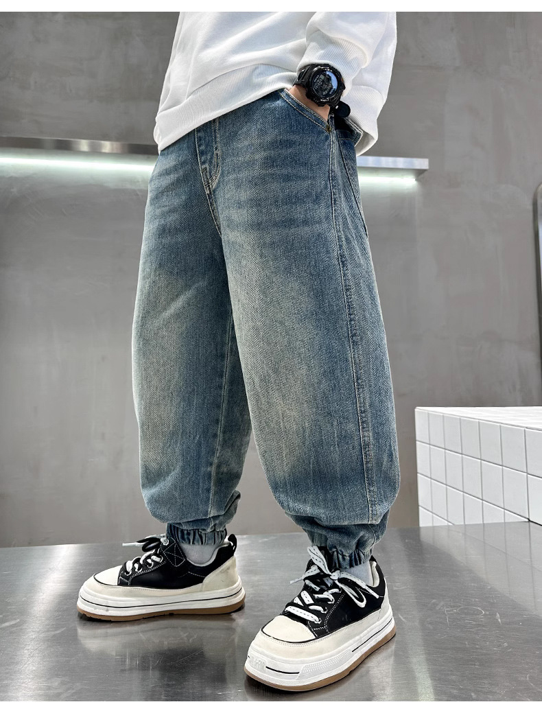 아동복 소년 청바지 봄, 가을 2025 새로운 아동 바지 중대형 아동 레깅스 루즈한 소년 바지스토어 가기