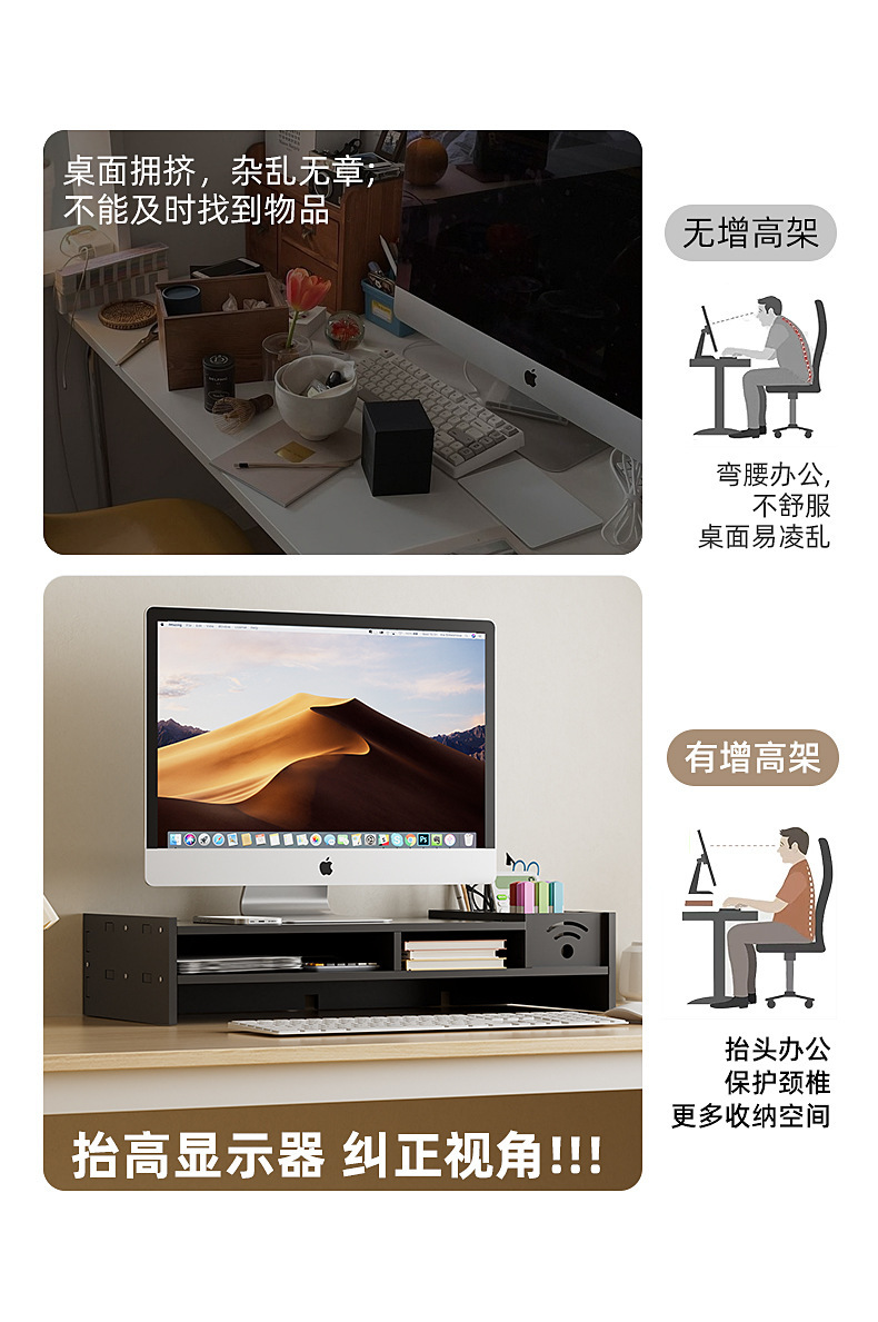 컴퓨터 높은 랙 데스크탑 스토리지 랙 오피스 데스크탑 높은 스토리지 랙 노트북 지원 랙 모니터 브래킷스토어 가기