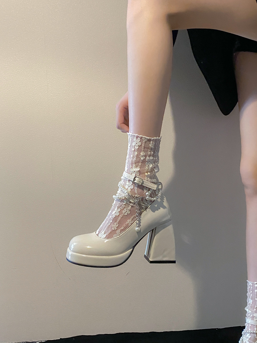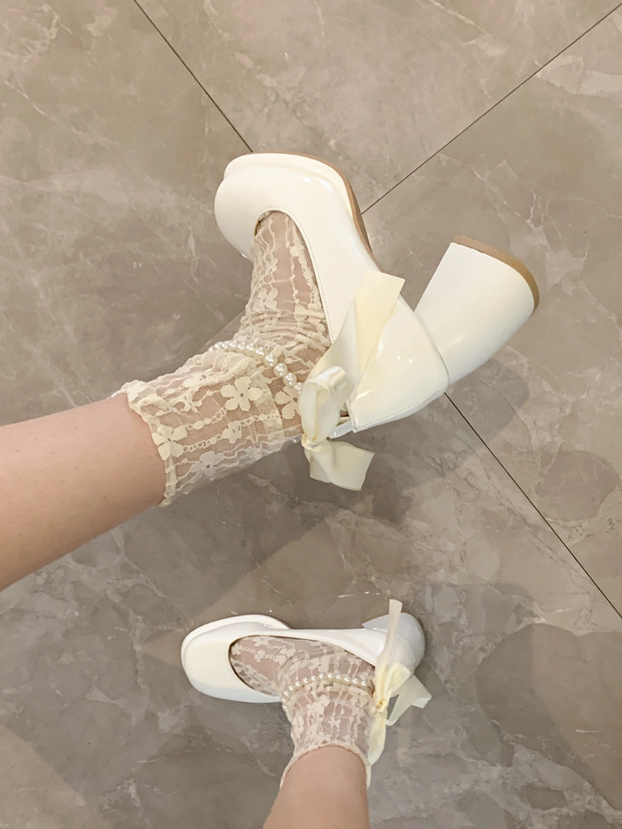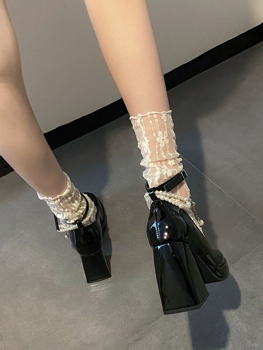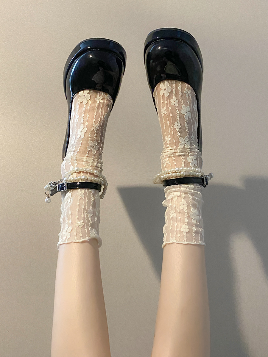 여름 여성용 흰색 레이스 양말 얇은 메리 제인 메쉬 양말 중간 튜브 달콤한 로리타 짧은 스타킹